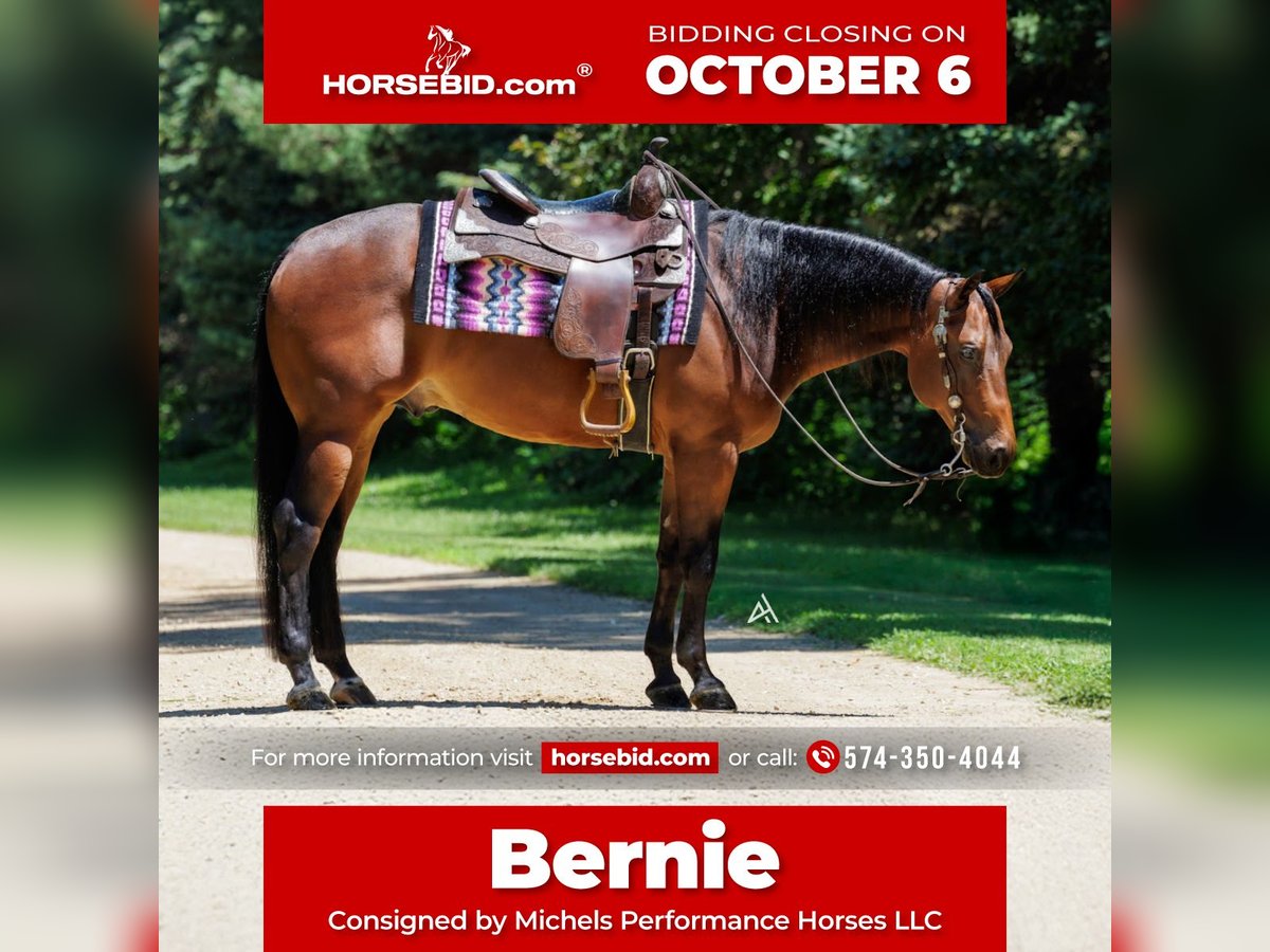 🍂 𝓐𝓾𝓽𝓾𝓶𝓷 𝑨𝑳𝑳 𝑺𝑻𝑨𝑹 𝑳𝑰𝑵𝑬𝑼𝑷 🍂 Happening now thru MONDAY | OCTOBER 6th - Available EXCLUSIVELY on HorseBid's website! For more details and to register visit: www.Horsebid.com CONSIGNOR CONTACT: Michels Performance Horses LLC 574-350-4044 LOCATION: River Falls, WI BREED: AQHA REGISTERED: Yes REGISTERED NAME: Rowdy And Electric COLOR: Bay HEIGHT: 15 AGE: 5 GENDER: Gelding Meet Rowdy And Electric, a 15 hand bay gelding with a heart of gold. Affectionately known as Bernie, this talented horse has made a name for himself in the show ring with $38,573 in NRHA earnings. Bernie is a versatile athlete who has been shown in all levels, showcasing his exceptional skills and adaptability. With his impressive track record and years of derby competition ahead of him, Bernie is a top contender ready to take on any challenge that comes his way. He is incredibly well-bred and has big time names on both sides of his papers. He’s also been a NRHA Level 3/4 Open Futurity Finalist, and in addition to this, Bernie is even a FULL sibling to Mr. Electric Spark (winner of over $160k!) Bernie consistently marks 72-74’s at all the major reining events and is easy to get around the show pen. Bernie an open caliber horse but is gentle enough for the Non Pro divisions and even a more confident rookie rider will enjoy showing him. He is easy to handle and totally used to kids, dogs, chaos, etc. He has a HUGE stop, good set of spins, and a lot of athletic ability to earn credit in all the reining maneuvers. Bernie also is solid outside of the arena and will do excellent for the crossover events like the Ranch Versatility. This gelding is the epitome of a true professional - he has no vices and is a joy to work with in every aspect. Bernie's solid training and natural talent shine through in every performance, making him a standout in the arena. Whether you're a seasoned competitor looking for a reliable partner or a rider eager to learn and grow, Bernie is the perfect match. With his winning attitude and proven success, he is sure to bring joy and pride to his lucky new owner.