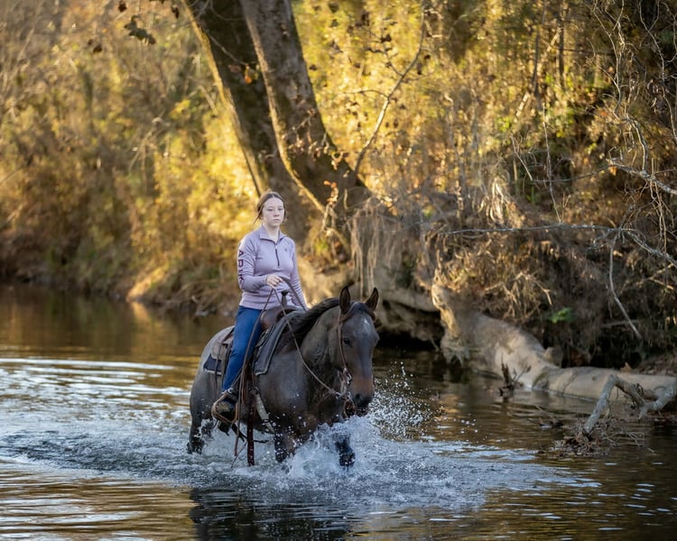⚜️ 𝓽𝓱𝓮 𝐇𝐨𝐫𝐬𝐞𝐦𝐚𝐧'𝐬 𝓢𝓱𝓸𝔀𝓬𝓪𝓼𝓮⚜️ Happening now thru MONDAY | DECEMBER 1st - Available EXCLUSIVELY on HorseBid's website! For more details and to register visit: www.Horsebid.com CONSIGNOR CONTACT: Jamie Thomason 270-772-1706 LOCATION: Auburn, KY BREED: AQHA REGISTERED: Yes REGISTERED NAME: DJ VALENTINE BLU MAN COLOR: Bay Roan HEIGHT: 15 AGE: 5 GENDER: Gelding Show-stopping presence and stunning good looks, he is as eye-catching as he is capable. Jericho is a 5 yr old, AQHA, Bay Roan gelding, standing at a comfortable 15 hands. Seasoned on the trail and confident in the arena, Jericho brings true versatility, athleticism, and a bright, willing mind to every ride, making him a standout partner for all your adventures! Jericho has been my personal partner on the trail. He’s sure-footed, calm, and confident. Travels through creeks, up and down inclines, down winding paths, over rocky terrain, and even navigating his own path through thick underbrush when normal paths were impassable, he handles it all with patience and a steady step. Jericho will ride away from the group or stand patiently as others ride away. He is unbothered when other riders pick up the pace in front of him, never changes speed unless asked. He stands patiently for mounting and waits until you ask him to ride off. He’s been very enjoyable to bring along with friends on weekend rides. Jericho is confident in the arena. A fun, forward ride, he travels both directions on the correct lead, moves laterally, transitions smoothly, and has a nice stop. He has been lightly started over cross rails. He’s a natural! Has plenty of scope & the willingness to pursue stadium jumping with a confident rider. On the farm, Jericho has helped us gather cattle alongside stock dogs. Opens & closes gates. He’s unbothered by UTV/ATV’s, large farm equipment, and is comfortable around other livestock. Jericho is an easy to own horse. He has impeccable stall manners, always neat & tidy. Also perfectly content living outside. He turns out in a mixed herd, no issues & is easy to catch. A gentleman to load & haul. Fun, versatile, and always ready for an adventure, Jericho is the kind of partner who rises to every occasion. Whether you’re searching for a trusted trail companion or an enjoyable arena horse, Jericho is the one! If you would like to meet Jericho or have any other questions prior to adding him to your family, feel free to reach out! PPE’s welcome! We can assist in arranging shipping to anywhere! Contact Jamie @ 270-772-1706 Located in Auburn, KY