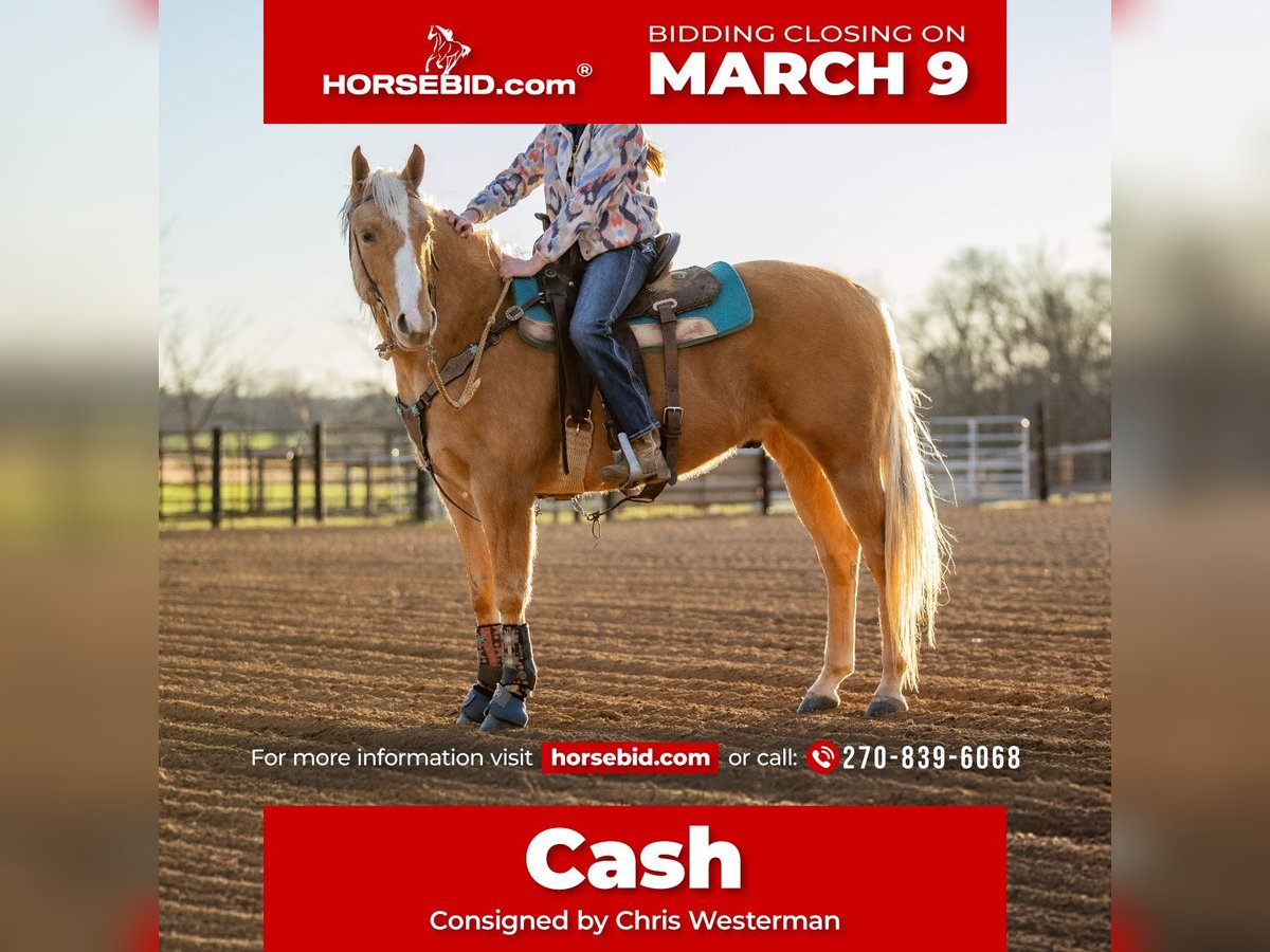 ℳ𝒶𝓇𝒸𝒽 ♦️𝐑𝐈𝐃𝐄𝐑'𝐒 𝐂𝐇𝐎𝐈𝐂𝐄♦️ Happening now thru MONDAY | MARCH 9th - Available EXCLUSIVELY on HorseBid's website! For more details and to register visit: www.Horsebid.com CONSIGNOR CONTACT: Chris Westerman 270-839-6068 LOCATION: Trenton, KY BREED: AQHA REGISTERED: Yes REGISTERED NAME: Check Your CD Cash COLOR: Palomino HEIGHT: 15.1 AGE: 6 GENDER: Gelding Cash is a six year old ready for you to take him to the next level. He has seen the barrel pattern, been started on both sides of the roping box, has been used to pasture rope baby calves, and conquered numerous trails. His hustle and quick feet give him the ability to be an all around horse.