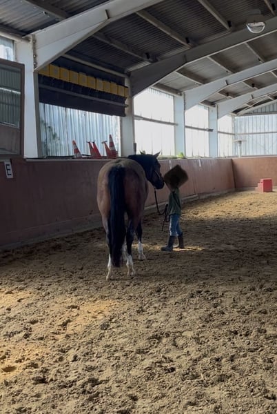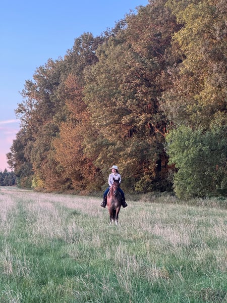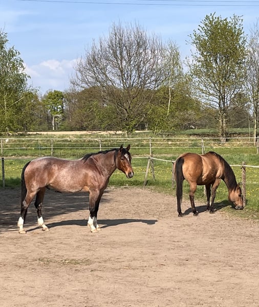 Zum Verkauf steht Hancocks Best Broany *Bruno* Ich wünsche mir für ihn ein Zuhause, in dem er seinen Bedürfnissen nach gefördert und gefordert wird. Er ist ein Pferd der sehr auf seinen Menschen fixiert ist und Lust hat jeden Tag was zu machen. Er wäre wohl lieber ein Hund geworden, er liebt es immer und überall bei seinem Menschen zu sein ;-) Er profitiert sehr von einem festen Rhythmus und Umfeld. Er hat lange Zeit bei mir im Offenstall mit 2 anderen Wallachen gelebt, da er zum Fressen und Schlafen gerne seine Ruhe hat, haben wir ihn seit letzten Sommer für nachts in eine Paddockbox gestellt und das genießt er sehr. Er wurde 3 jährig für ein paar Monate unter dem Sattel gestartet, was er völlig tiefenentspannt gemacht hat, dann hatte er noch mal Pause. Seit März 2025 ist er regelmäßig unter dem Sattel. Er kennt außerdem die Grundlagen der NHS Bodenarbeit und die Arbeit am Mobility Bridle. Ich bin viel mit ihm Spazieren gegangen und habe auch 2 Mal bei dem Natur Trail von den Mountain Trailern mitgemacht, solche Hindernisse bewältigt er mutig und mit großer Freude. Ich bin viel mit ihm ausgeritten und habe auch die Gymnastizierende Basis Arbeit oft draußen auf freien Wiesenflächen gemacht, da er dort einfach am motiviertesten ist. Er ist da sehr fein zu reiten, größtenteils bin ich ihn gebisslos mit Knotenhalfter oder Bosal geritten. Was er gar nicht mag sind tägliche Reiteinheiten in der Halle. Ich wünsche mir für ihn einen Menschen, der souverän und sicher in der Kommunikation ist dabei aber sensibel genug, sowohl am Boden als auch vom Sattel aus. Auf keinen Fall ängstlich oder unsicher. Jemand der die große Leidenschaft von ihm teilt draußen unterwegs zu sein( auch gerne anspruchsvoll) Haltungstechnisch wären große Flächen mit Kumpels zum Toben und Spielen genau sein Ding und Nachts ein Rückzugsort für ihn alleine. Ich gebe ihn nur sehr schweren Herzens ab, weil sich meine Ambitionen von seinen doch sehr unterscheiden. Und ich ihn nicht weiter in eine Schablone pressen möchte die er nicht mag. Platz vor Preis- Er geht nur wenn es wirklich 100% passt.
