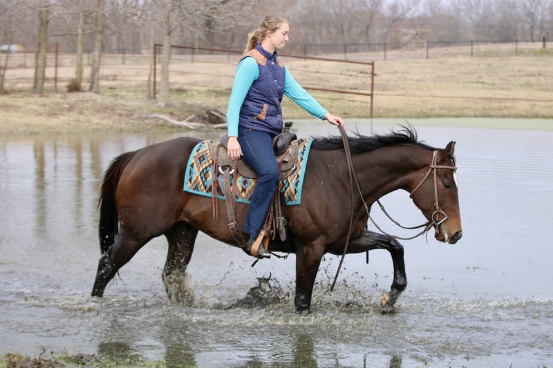 ⚜️𝓽𝓱𝓮 𝐆𝐎𝐋𝐃 𝓢𝓮𝓵𝓮𝓬𝓽⚜️ Happening now thru MONDAY | MARCH 23rd - Available EXCLUSIVELY on HorseBid's website! For more details and to register visit: www.Horsebid.com CONSIGNOR CONTACT: The Good Gelding Company 903-275-0343 LOCATION: Athens, TX BREED: Appendix REGISTERED: Yes REGISTERED NAME: GGC Swagger COLOR: Bay HEIGHT: 15.2 AGE: 6 GENDER: Gelding Swagger is a handsome 6-year-old dark bay Appendix gelding standing 15.2 hands with a great mind and an easygoing personality. He is the type of horse that is enjoyable to have around and willing to do whatever you ask of him. Swagger rides both English and western and has been lightly exposed to a variety of things. He trots the barrel pattern, comfortably trots ground poles and cross rails, and has proven to be a fun and willing partner no matter what tack you throw on him. He has also been trail ridden extensively, confidently crossing water and navigating obstacles out on the trail. He is the kind of horse you can enjoy in many different ways. Swagger is comfortable riding bareback, has excellent ground manners, and truly enjoys being around people. He is easy to handle, polite on the ground, and pleasant to work with. Swagger is currently barefoot and doing well that way. He would make a wonderful partner for someone looking for a versatile horse to enjoy trails, arena riding, or continue developing in multiple disciplines. Swagger is a kind, willing gelding with a great attitude and the potential to continue going in many directions.