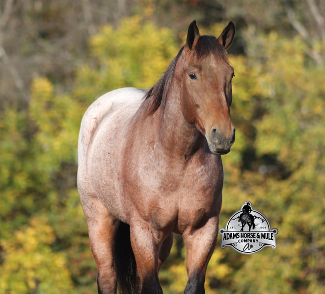 Go to visit our website for more pics and a video www.AdamsHorseAndMuleCo.com AHAMC has been in the horse business and sold horses over the internet since 2005. We have a long track record of success with hundreds of happy customers. We work hard to match riders with the correct horses and specialize in beginner safe, family friendly horses that have been used and checked out by our family! We can set up transportation anywhere in the US and look forward to working with you.Meet Reno, a super cool, stout built, bay roan, draftcross gelding that is standing around 15.2hh. He will weigh 1250lbs, he is 5 years old and he has all the good looks, and (the best part) the mindset that anyone could ask for! Not only does he look cool, he has all of the other boxes checked as well… he is Mr. Personality, as friendly as they come, loves attention and is very calm natured. Reno has been ridden by every member of our family all the way down to our 6 year old and he will be the perfect horse for the whole family to enjoy! He is the same horse whether ridden daily or if he is left off for a couple months. He has been ridden around the ranch, checked cows and pushed them around. Reno is great on trails and he will cross creeks, ditches, logs and navigate rough rocky areas. He has a smooth jog, one of the slowest and softest lopes that you will find, a good stop and reins around as well! He has been exposed to all kinds of wildlife such as deer or turkey and will go anywhere that he is asked too. He has been ridden many miles in the mountains of Eastern Kentucky and encountered every obstacle possible on the trail. He will go up or down even the steepest slopes, across deep creeks, over downed trees, and over all types of rough terrain while still being sure footed. He is also harness broke and has been used in all types of farm machinery. Reno is not cinchy, cold backed, does not crib or weave. If you need your confidence boosted, Reno is the one for you!!! Feel free to call Eric 606-308-2461 with any questions.