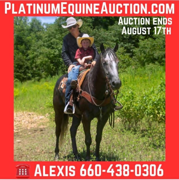 ONLINE AUCTION Place your bids at www.PlatinumEquineAuction.com Starting Bid $3500 Auction ends August 17th, 2025 Need a new saddle? Check out White Rock Saddles on our website or Facebook Meet Eddie, a striking 5-year-old registered blue roan gelding standing a solid 15.2 hands tall. This classy young gelding checks all the boxes — looks, experience, and potential. Eddie is the kind of horse that’s hard to find and even harder to let go. He’s been there, done that, and still has his whole life ahead of him. Whether you’re needing a solid partner for everyday ranch work or a dependable mount for trail adventures, Eddie’s your guy. ✅ Ranch-Raised & Ready: Eddie has spent time working in real ranch country — He knows what a day’s work looks like. He’s been used at the sale barns and has seen all the commotion without blinking an eye. ✅ Trail-Savvy & Sure-Footed: He’s been hauled to Baker, Spain and ridden across varied terrain. Confident alone or in a group, Eddie crosses water, brush, and obstacles like a pro. ✅ All-Around Using Horse: Soft in the bridle, responsive to leg cues, and smooth to ride, Eddie is versatile enough to continue in any direction — ranch versatility or weekend warrior. ✅ Honest Gelding Eddie has a great working mind. He’s the kind that will go all day long, take care of you and still get the job done. ? Age: 5 years old ? Height: 15 hands ? Color: Blue Roan ? Registered: Yes ? Discipline: Ranch, Trail, Sale Barns – All-Around Using Horse Eddie is ready to step into your life and stay there — whether you’re a working cowboy or a family looking for your next dependable gelding. Horses like him don’t come along every day. For more info call AM Equine Alexis 660-438-0306 with any questions. Located in Cole Camp, MO. ONLINE AUCTION Place your bids at www.PlatinumEquineAuction.com Starting Bid $3500 Auction ends August 17th, 2025 Need a new saddle? Check out White Rock Saddles on our website or Facebook