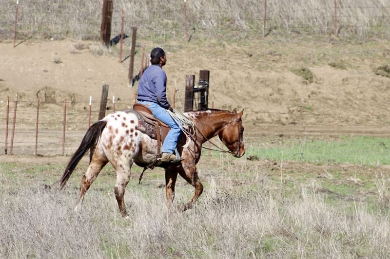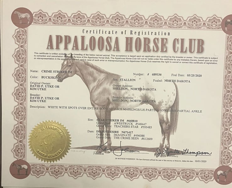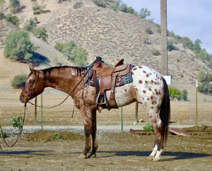 ONLINE AUCTION Place your bids at www.PlatinumEquineAuction.com Starting Bid $3500 Auction ends December 7th, 2025 Need a new saddle? Check out White Rock Saddles on our website or Facebook Crime Striker IM –Registered 2020 Appaloosa Gelding, 15.2 Hands • Blanket & Spots • Foundation Appaloosa Breeding. If you’ve been searching for your next lifelong companion — the kind you can trust, enjoy, and rely on for years — Crime Striker IM deserves a serious look. He isn’t just a pretty gelding with color. He’s the result of generations of purposeful Appaloosa breeding, and he carries himself with the steady, thoughtful way that comes from a good mind paired with a good upbringing. Crime Striker IM already has real miles under his belt and a solid foundation that shows the moment you sit on him. He goes low-headed, stays soft in the bridle, and lopes a clean, correct circle. His stop is smooth, his cadence is natural, and he rides with the kind of level, settled mindset that makes every ride feel the same — honest, dependable, and uncomplicated. He’s seen all the right things: flags, tarps, bridges, water, rocks, brush, and open country. He meets each obstacle with a thinking attitude, never in a rush, never bothered. Out on the trail he’s steady and sure, willing to ride out alone or with company, and comfortable in new places. He’s gathered cattle, stepped through ranch chores, and carries himself like a horse raised to handle real work without fuss. At 15.2 hands, he has the size and movement to shine in either Western or English tack. He’s been ridden English and carries a long, sweeping stride that gives him a polished look in any arena. Whether you want a versatile ranch gelding, a handsome all-arounder, or an elegant English prospect, he’s got the build, the style, and the brain to fit the job. His pedigree backs all of this up. Crime Striker IM is sired by Star Striker IM, a horse tracing back to Awestruck, a line known for good bone, dependable minds, and lasting soundness. His dam, Dunes Desire, brings in Imaginate and The Crime Seen, foundation Appaloosa names known for producing correct, durable, sensible horses with the kind of disposition people look for. This is a gelding bred to last. Around the barn, he’s just as easy. Friendly, kind, and straightforward to handle. He meets you at the gate, stands quiet to clip, tie, shoe, and saddle, and settles easily in a stall or pasture. He hauls well, steps off relaxed, and carries himself with a maturity that’s impressive for his age. Crime Striker IM is a young gelding with miles, manners, color, and the kind of foundation you can build a lifetime on. If you’re looking for a partner you can enjoy now and appreciate for many years to come, he’s standing here ready. Located at Longhorn Ranch – Paicines, California Contact: Dina 831-537-1915 Shipping available nationwide ONLINE AUCTION Place your bids at www.PlatinumEquineAuction.com Starting Bid $3500 Auction ends December 7th, 2025 Need a new saddle? Check out White Rock Saddles on our website or Facebook