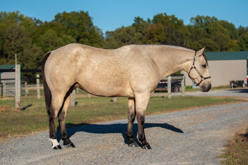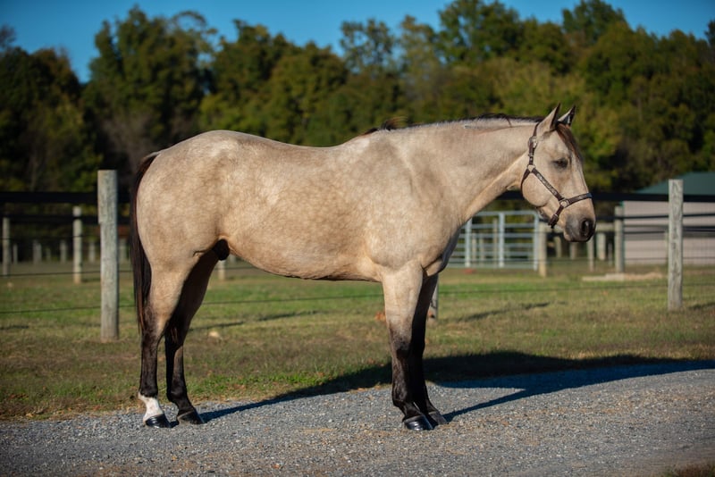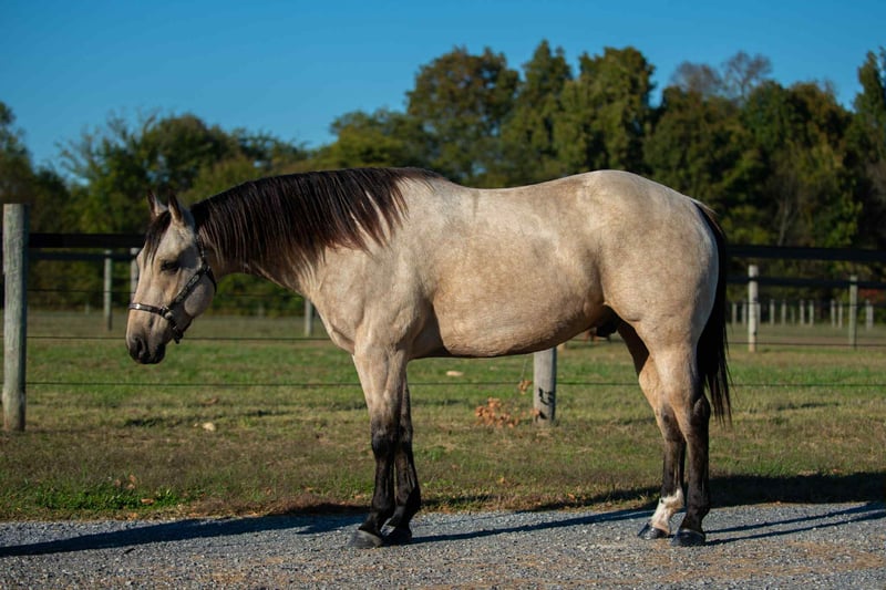 ⚜️𝐓𝐇𝐄 𝐅𝐀𝐋𝐋 𝐇𝐄𝐑𝐈𝐓𝐀𝐆𝐄 𝐂𝐋𝐀𝐒𝐒𝐈𝐂⚜️ Happening now thru MONDAY | NOVEMBER 3rd - Available EXCLUSIVELY on HorseBid's website! For more details and to register visit: www.Horsebid.com CONSIGNOR CONTACT: Blue Ridge Performance Horses 608-540-8038 LOCATION: Mayfield, KY BREED: AQHA REGISTERED: Yes REGISTERED NAME: JT MR DOC BAR ONE COLOR: Buckskin HEIGHT: 15.2 AGE: 5 GENDER: Gelding Check out this beautiful big-broke gelding we call Captain! This sweet boy has been raised with us in our training program since the very beginning, with correct conformation, big bone, lots of body, athletic ability, and striking good looks he turns heads everywhere he goes! Caption Just recently finishing 2 years of professional reining and ranch riding training and just starting his show career this last season! ( with points in ranch riding and conformation classes) Captain executes effortless correct turnarounds, easy changes, nice rollbacks, smooth transitions, and big, deep stops! Captain is also a proven trail deluxe, used for camping and trail riding throughout most of his life. Furthermore, he's been used as a lesson horse this past year and has proven to be great with beginners. Captain will never turn down a spa day, standing calmly for grooming, trimming, and baths. He's also good for trailering and will stand tied all day. Captain sells 100% sound and is up-to-date on vaccinations and Coggins; PPEs are welcomed! Selling due to no fault of his own, we've switched to more specialized reining and don't see him enjoying the higher level reining shows. Captain has been roped off of and would make an exceptional header or rope horse prospect with his size and ability to get up and go. Contact Bili at 608-540-8038 for more information about Captain today!