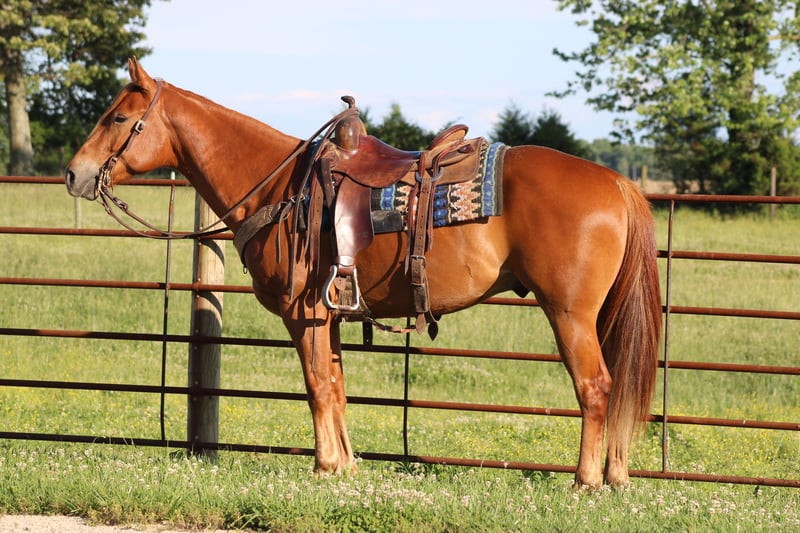 ONLINE AUCTION Place your bids at www.PlatinumEquineAuction.com Starting Bid $3500 Auction ends June 16th, 2024 Need a new saddle? Check out White Rock Saddles on our website or Facebook! Benny is a 2020 model 15.2H registered AQHA gelding that has a very impressive pedigree! He is bred to slow lope and that’s his favorite thing to do! Benny has been exposed to many types of situations out on the farm and on the trail! He rides in an arena as well! I can’t explain to you enough how gentle this horse is! You can go out in a 10 acre field and he will come up and put his head in the halter! This horse has a great brain for a young and learning equine! He has a perfect start to him and has had tons of ground work and desensitizing done! He is GENTLE AND A PUPPY!!! He will walk, trot, and lope the very best! Here is a young horse with his whole life ahead of him! He has been in good hands and is going to make such a nice gelding! He loves to learn and still has learning to do! He is super easy to handle and mess with! If youre looking for a horse that’s started the best that you can take come and continue to teach him every time you saddle him up here he is! He has a great set of papers and is super good minded! He is located in Sonora Ky! Call Clayton Ryan 270-766-2641. ONLINE AUCTION Place your bids at www.PlatinumEquineAuction.com Starting Bid $3500 Auction ends June 16th, 2024 Need a new saddle? Check out White Rock Saddles on our website or Facebook!