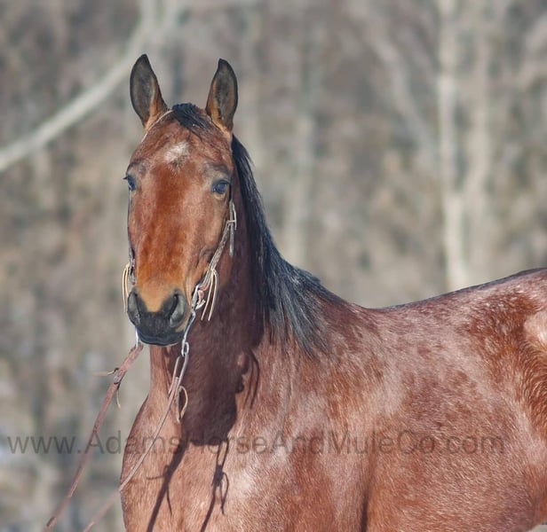 Go to visit our website for more pics and a video. AHAMC has been in the horse business and sold horses over the internet since 2005. We have a long track record of success with hundreds of happy customers. We work hard to match riders with the correct horses and specialize in beginner safe, family friendly horses that have been used and checked out by our family! Diagonal Hancock is a beautiful Bay Roan that is very stout built, standing 15.3hh and he is a 2020 Model Registered AQHA Gelding! Since back in the Summer DH has been with a family who has a small cow/calf operation. He has done some of it all from sorting to roping and doctoring. But DH’s main job has been toting the kids around the place and down the trails. DH is a gentle type of horse that is never in a hurry! He lopes nice slow circles, catches the correct leads, has a good stop and reins around. DH is content to mosey along down the trail and loves going on trail rides. He will cross creeks, ditches, logs and navigate rough rocky areas. DH has been exposed to all kinds of wildlife and will go anywhere that he is asked too. He has been rode many miles in the mountains and encountered every obstacle possible on the trail. He will go up or down even the steepest slopes, across deep creeks, over downed trees, and over all types of rough terrain while still being sure footed. DH has been ridden down the highways and is traffic safe as well. If you need a broke, quiet, gentle, safe horse for ranch or trails… DH is your guy! Call 606-308-2461 with any questions.