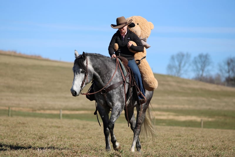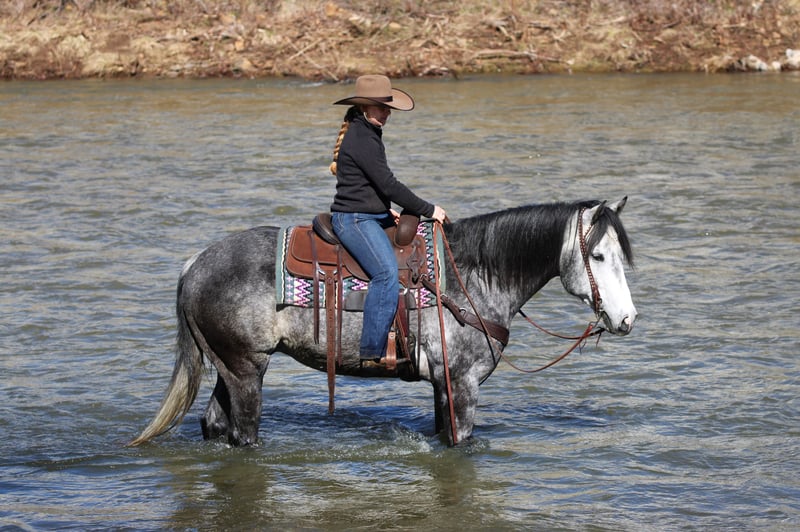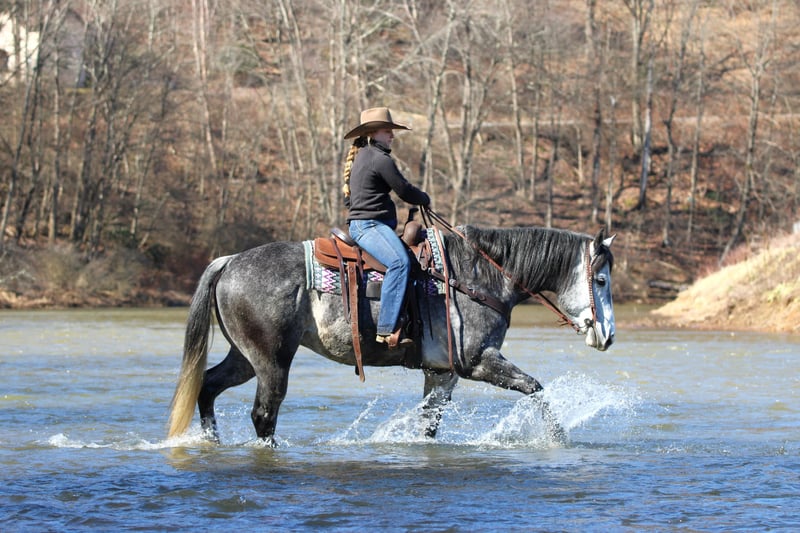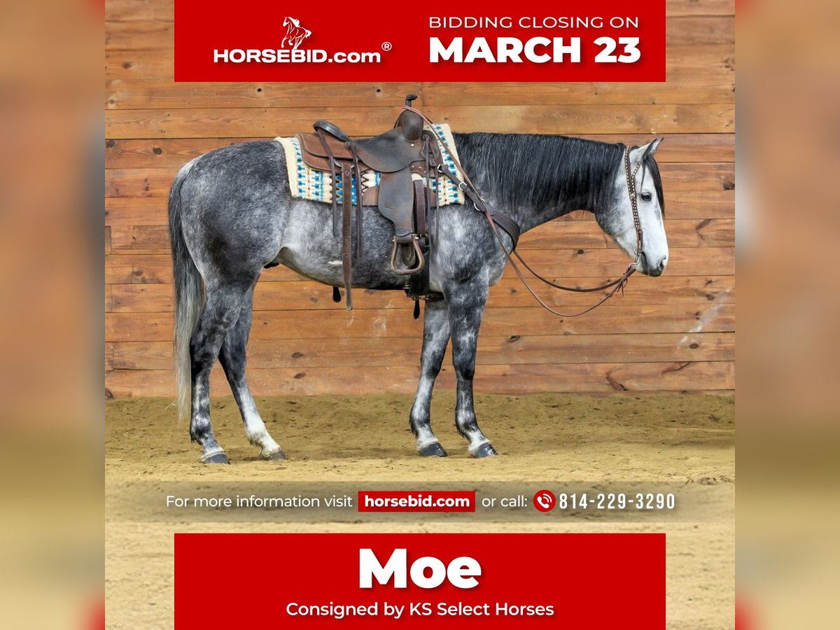 ⚜️𝓽𝓱𝓮 𝐆𝐎𝐋𝐃 𝓢𝓮𝓵𝓮𝓬𝓽⚜️ Happening now thru MONDAY | MARCH 23rd - Available EXCLUSIVELY on HorseBid's website! For more details and to register visit: www.Horsebid.com CONSIGNOR CONTACT: KS Select Horses 814-229-3290 LOCATION: Clarion, PA BREED: Quarter Horse REGISTERED: Yes REGISTERED NAME: Moe COLOR: Grey HEIGHT: 15.3 AGE: 6 GENDER: Gelding Moe is a Registered American Quarter Horse Gelding. Wow Check Him Out! Super Pretty Dark Grey Color ! Moe has the good looks but has the brain and the good ride to go with it. He is very well trained! But Also Very Quiet and Gentle. Moe has had professional training and has a nice one hand neck rein, good stop and back up and side pass. Smooth trot with head set and smooth lope. Moe has done a little bit of everything in his life. He is a finished ranch horse and has been started on roping and has been on many miles of trails making him a excellent all around safe trail horse. When riding Moe on the trail you will appreciate how sure footed and how he goes wherever you point him to go and doesn't refuse or hesitate. Very seasoned beyond his years. Moe rides so nicely in the arena he could even go and make a English horse but he has primarily been rode wester. Super Friendly and Loves Attention. Moe can go in any direction but one thing that is for sure whoever buys him will absolutely love him. Great Age, Great Color, Super Good Looking, Registered With Streaking Six and Frenchman Guy on his papers. All This Making Him A Complete Package! Dont Miss Out on Moe. Call or Text Kris at 814-229-3290. We can help arrange delivery anywhere in the United States. Thank You and God Bless