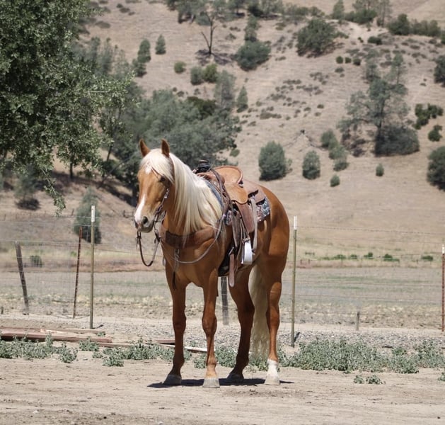 ONLINE AUCTION Place your bids at www.PlatinumEquineAuction.com Starting Bid $3500 Auction ends June 8th, 2025 Need a new saddle? Check out White Rock Saddles on our website or Facebook! Meet 24-Carrot This golden palomino is a real head-turner, capturing everyone’s attention with his radiant beauty. Picture this: a magnificent horse with a long, flowing mane and tail that shimmer in the sunlight. Standing at 16 hands tall, he’s like a living, breathing work of art. And despite being just 5 years old, he carries himself with the calm and gentle spirit you’d expect from a much older horse. He’s got this adorable puppy-dog personality that just melts your heart. I swear, if he could, he’d be right there snuggling with you on the couch! Riding 24-Carrot is an absolute dream. He transitions between walk, trot, and canter so smoothly and gracefully. He’s got a lovely headset, responds beautifully to leg cues, and stops and backs with ease. You can tell he’s been trained for a variety of disciplines. But don’t let his good looks fool you – he’s incredibly versatile too! Whether he’s navigating tough trails or tackling obstacle courses, he approaches everything with the confidence of a seasoned pro. What really gets me about 24-Carrot are his kind, intelligent eyes. They say a lot about his personality. He stays calm even around busy roads, making him super safe for riders of all levels. He’s experienced on trails, confidently handles water, logs, trees, and wildlife. He doesn’t mind riding alone or with other horses. He’s been used to gather cattle and remains composed in any situation. Plus, he’s a champ on obstacle courses, unfazed by bridges, flags, bouncy balls, and tarps. This great boy is always happy to see you, stands patiently for everything from saddling to bath time, and travels well. If you’re interested in meeting 24-Carrot, reach out to Dina at Longhorn Ranch at 831-537-1915. located in Paicines, CA, and can arrange shipping throughout the US. ONLINE AUCTION Place your bids at www.PlatinumEquineAuction.com Starting Bid $3500 Auction ends June 8th, 2025 Need a new saddle? Check out White Rock Saddles on our website or Facebook!