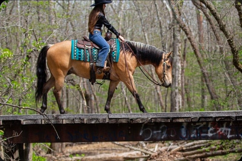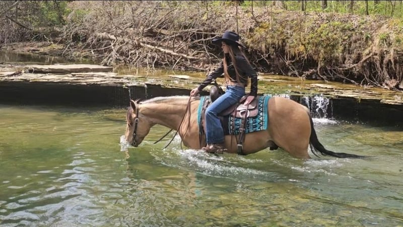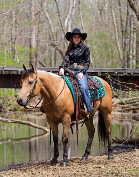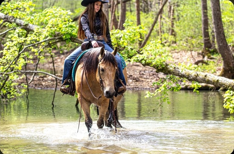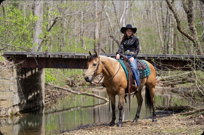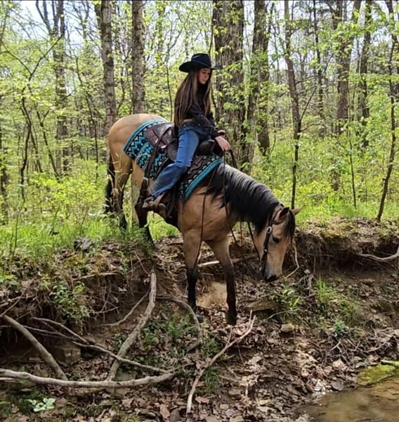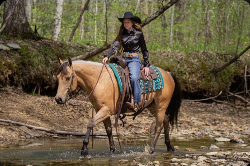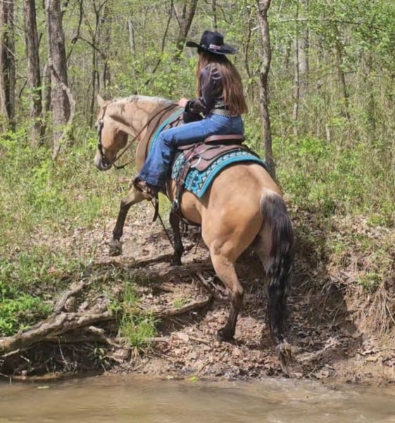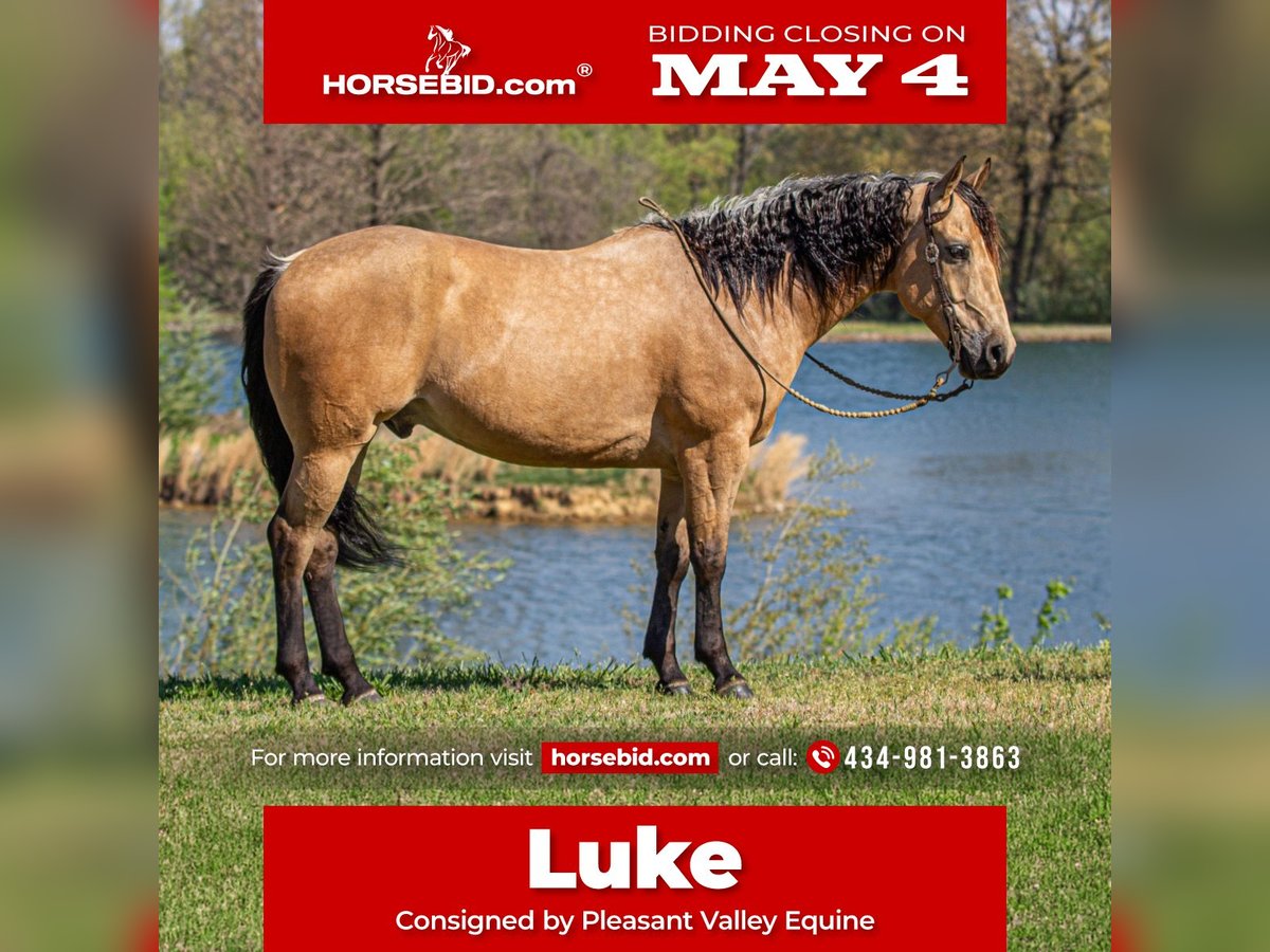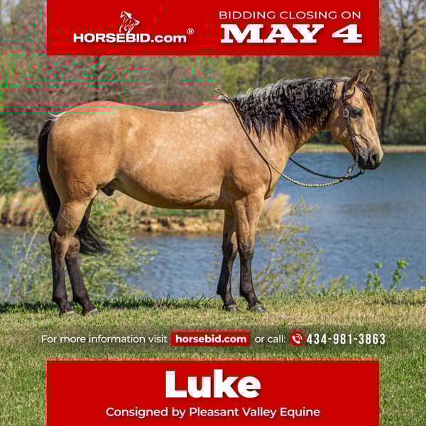 ▪️▫️◾️𝐭𝐡𝐞 𝑴𝒂𝒚 𝐒𝐞𝐥𝐞𝐜𝐭◾️▫️▪️ Happening now thru MONDAY | MAY 4th - Available EXCLUSIVELY on HorseBid's website! For more details and to register visit: www.Horsebid.com CONSIGNOR CONTACT: Pleasant Valley Equine 434-981-3863 LOCATION: Robards, KY BREED: Quarter Horse REGISTERED: Yes REGISTERED NAME: OC Jax Jet COLOR: Buckskin HEIGHT: 14.2 AGE: 6 GENDER: Gelding Doesn't get any quieter, safer or honest then this guy right here & he's absolutely handsome. Great for the beginner kids and adults. Perfect for the whole family. QUIET, BROKE, and A BLAST TO RIDE. Are you looking for a lifetime partner to take long walks in the woods? Gallop through the fields and just enjoy your time in the arena with? Look no further. Let a 7 year old, AQHA gelding that stands 14.2 hands and weighs 1000 lbs. He is a beautiful BUCKSKIN with a frosted mane. He has a calm demeanor and loving attitude. He loves to be groomed and enjoys attention. Luke has carried green/begginer riders through rough terrain. Luke has gone on several group trail ride. He can ride in big groups, small groups, with wagons and he can even packed saddle bags.He is tained to stand with hobbles or stay on a picket line overnight. He will ride out alone and away from the barn and be dependable. He will cross big bodies of water, steep/slippery banks, cross logs, go through mud and is traffic safe. Not only is he great out on the trail, but Luke rides great in the arena. He is soft in the face, neckreins and can ride in something as simple as a halter or a D ring snaffle. He gives to the bit laterally and vertically and moves off leg pressure with ease. He has a groodstop and nice turn arounds. He definitely a more WHOA then go kinda horse. Luke has a smooth, slow jog and a rocking chair lope. Luke is currently shod all the way around, but he has nice dark, hard feet and would be a great candidate to go barefoot. He stands great for baths, the farrier, tacking/untacking, and mounting. He gets along with other horses in the field and easy to catch. He also loads in and out of the trailer with ease. Luke makes mounting simple. He will side pass over to a log, mounting block, or picknick table with just a snap of your fingers. He will also drop his head low to make bridling easy. Don't miss out on Luke. Luke sells 100% sound with no vices or blemishes. He UTD on vaccinations and dental. Call today to set up an appointment to meet LUKE 434-981-3863.