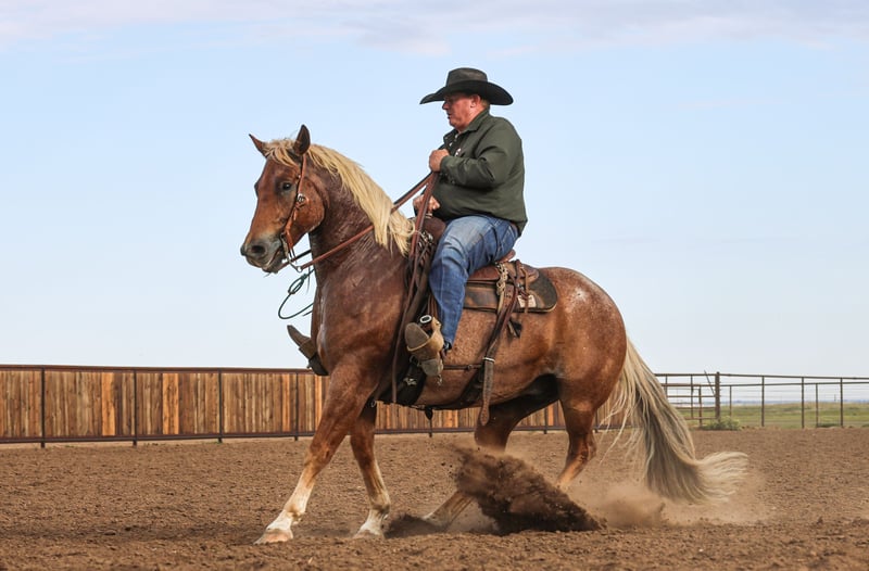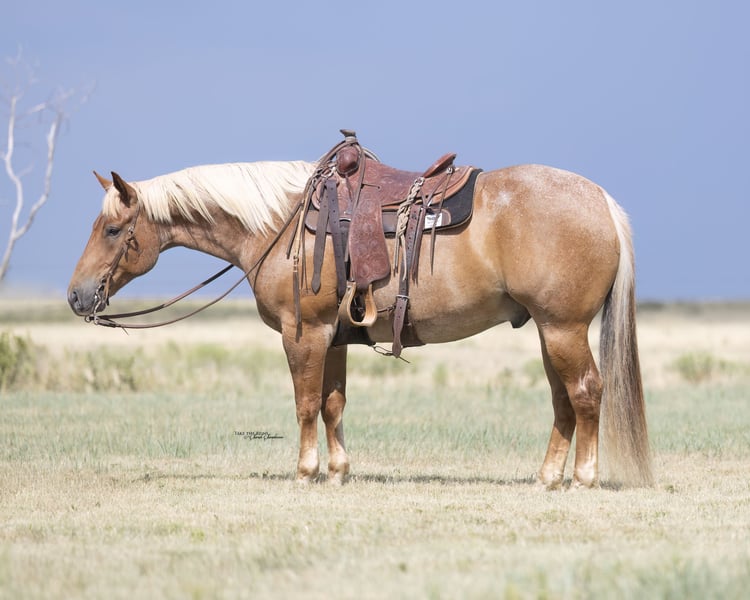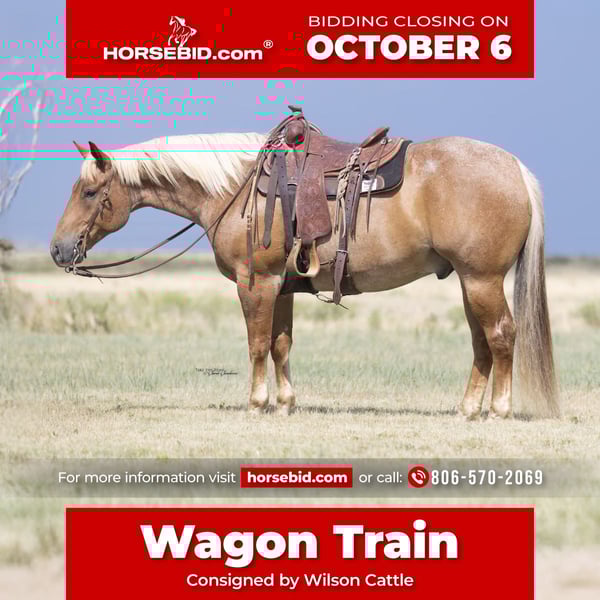 🍂 𝓐𝓾𝓽𝓾𝓶𝓷 𝑨𝑳𝑳 𝑺𝑻𝑨𝑹 𝑳𝑰𝑵𝑬𝑼𝑷 🍂 Happening now thru MONDAY | OCTOBER 6th - Available EXCLUSIVELY on HorseBid's website! For more details and to register visit: www.Horsebid.com CONSIGNOR CONTACT: Wilson Cattle 806-570-2069 LOCATION: Canyon, TX BREED: AQHA REGISTERED: Yes REGISTERED NAME: Bets Red COLOR: Red Roan HEIGHT: 15.1 AGE: 5 GENDER: Gelding Wagon Train is a 5 year old red roan gelding with a flaxen mane and tail. We purchased Wagon Train straight off of the legendary 6666s ranch as a 3 year old. He is by the great stallion “Bet Hesa Cat”. Who is sired by High Brow Cat, the NCHA's all-time leading sire, and out of Bet Yer Blue Boons, a millionaire producer. Wagon Train is a member of the last group of horses that went to the Road To The Horse from the 6666s ranch! If you have seen the advertisement from 2023 you have most likely seen him as he appeared as the face of Road To The Horse in numerous advertisements. We purchased Wagon Train shortly after and have done everything there is to do with one. Wagon Train is broke. He will turn around and stop. This horse can really run, not just kind of run! Wagon Train has seen the backside of big well-known ranches and been apart of big ranch brandings. Wagon Train is a big soggy gelding that is big enough to carry you all day and strong enough to pull a house down. He stands 15.1 and will weigh over 1,300 pounds. He is a go-getter. Wagon Train will stride out and cover country. He is one that will not wear down no matter how far you need to go. Wagon Train is well started on the head side and will drag his butt on the heel side. Our 12 year old nephew has used Wagon Train to gather cattle, sort cows from calves and load cattle on trucks. He has also headed on him in the arena. Wagon Train has never offered to buck or offered to even have a hump in his back. Wagon Train will always be the same horse every time you catch him. Wagon Train can be in a large group of horse, he will walk up to you and put his head down making him very easy to catch. When you bridle him he will put his head literally on the ground and accept the bit with ease. Wagon Train is a kind and gentle horse that comes with a lot of heart and try! Wagon Train is elegible for the following incentives: Royal Crown Roping, Riata Buckle, Gold Buckle Futurities, Ruby Buckle, and Royal Crown Barrel Racing among others. As always, we highly recommend that you come to our place and try him before the sale! Pre-purchase vet checks are always welcomed and encouraged. Look us up on social media of additional videos and pictures! Call anytime with questions. 940-268-6850