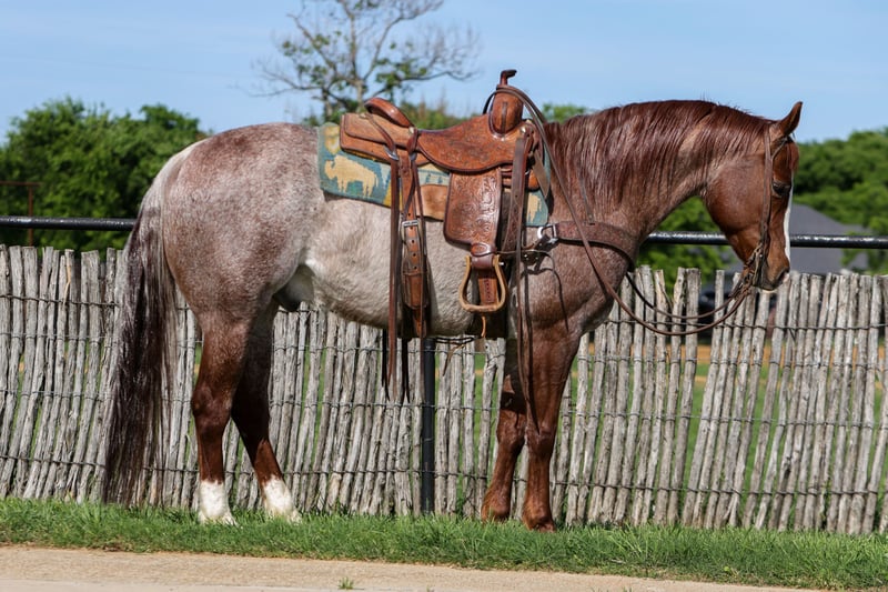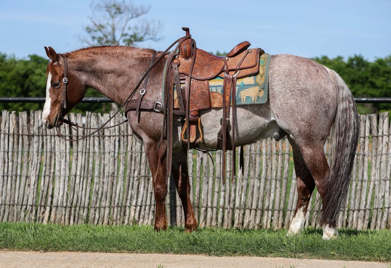 ▪️▫️◾️𝐭𝐡𝐞 𝑴𝒂𝒚 𝐒𝐞𝐥𝐞𝐜𝐭◾️▫️▪️ Happening now thru MONDAY | MAY 4th - Available EXCLUSIVELY on HorseBid's website! For more details and to register visit: www.Horsebid.com CONSIGNOR CONTACT: TR Livestock Company 605-370-4644 LOCATION: Rusk Texas BREED: AQHA REGISTERED: Yes REGISTERED NAME: Hobos lullaby COLOR: Red roan HEIGHT: 14.3 AGE: 6 GENDER: Gelding Jackson is a 6 year old red roan AQHA Red Roan gelding, standing 14.3 hands tall. He is clean legged, straight and correct in every way! Jackson is sired by “Brother Jackson” (LTE of over $180,000). Jackson has a reining foundation, he has nice spins, a good stop, collects and is supple in the face. He trots and lopes nice circles in the arena. Jackson has also been rode a lot outside, from working on the ranch and sorting cattle in the pens to trail riding he has done a little bit of everything! Jackson is quiet and gentle to be around. He’s excellent to bathe, shoe, tie, and trailer. Super nice all around gelding!
