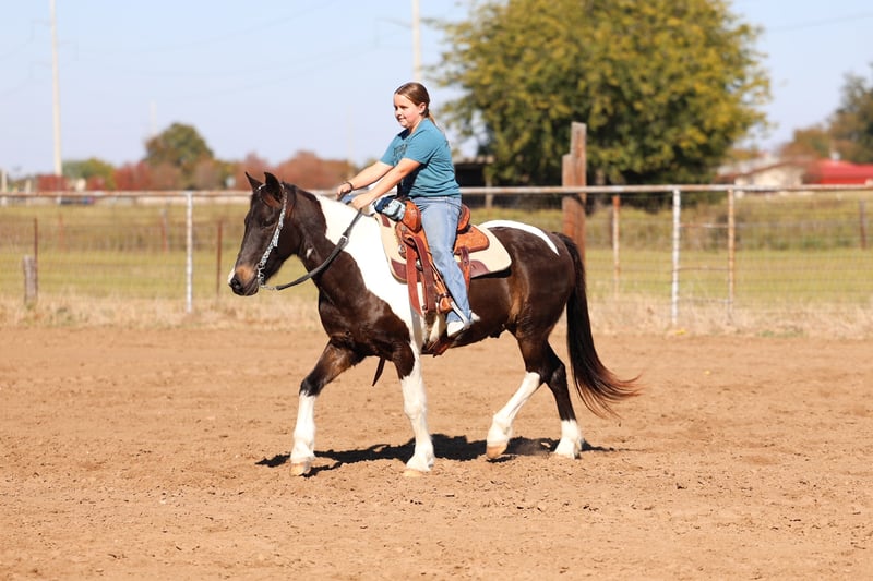 𝐉𝐀𝐍𝐔𝐀𝐑𝐘 ⭐️𝑨𝒍𝒍 𝑺𝒕𝒂𝒓 𝑳𝒊𝒏𝒆𝒖𝒑⭐️ Happening now thru MONDAY | JANUARY 26th - Available EXCLUSIVELY on HorseBid's website! For more details and to register visit: www.Horsebid.com CONSIGNOR CONTACT: MM Ranch 469-318-1902 LOCATION: Forney, TX BREED: Quarter Horse REGISTERED: No REGISTERED NAME: Toby COLOR: Tobiano HEIGHT: 13.3 AGE: 7 GENDER: Gelding Toby is the perfect little fun size horse standing 13.3 hands tall. He is only 7 years old but you wouldn’t be able to tell by how gentle he is! He has manners and rides around like a big horse, he’s as broke as broke gets and I would trust him with any kid, small adult, grandma or grandpa or any age beginner. Absolutely NO kick or buck in him! Absolutely no bad habits! Absolutely no maintenance or special care. He is simple, easy, and fun to ride. He has been more miles and seen more country than most people! When I say he’s been there and done that I mean it, he knows what a hard days work is outside in the country and will last all day. He is one handed broke, neck reins, and has a good stop! He has always been willing to go or do anything they have asked. He will ease thru the creeks/ponds, thickets, traffic safe, train safe, machinery safe, loud noises don’t bother him. He’s been to ropings, barrel races, has jumped jumps, rodeos, spent many of long days working cows, dragging calves, swimming ponds, tied out camping, and been thru every aspect of the woods from thickets to boggy creeks, and trail riding down the roads. He even rides ENGLISH! He will easily lope or trot over small jumps and is a very pretty mover. Toby has also been used to carry the American flag at rodeos. He is BOMBPROOF, not spook and will go anywhere he is pointed, he never refuses or says no. He is a once in a lifetime time little horse. ☀️ He is one of those that is as honest as the day is long. He’s easy to catch, bathe, and hauls like a champ. He has the biggest heart and try of anything we have on the place. The kids themselves, saddle, bridle, and ride him everywhere with ZERO help from an adult. I trust this little horse enough for little kids to run up to him from the front or back and he will stand like a rock. 🪨 You can go rope on him, run barrels, run poles, goats tie, TRICK RIDE, breakaway, and trail ride! Toby will walk, trot, lope, or go as fast as you want in all the events! He is the coolest little guy around and everywhere we go he gets ALL the attention. He leads, loads, ties, bathes, clips, and stands for the farrier. I really can’t say enough good things about him. Please don’t hesitate to call us about Harrison, I’d love to talk to you about him. ⚡️He sells 100% safe and sound in every way. 🌎 We can help with making shipping arrangements to anywhere!!