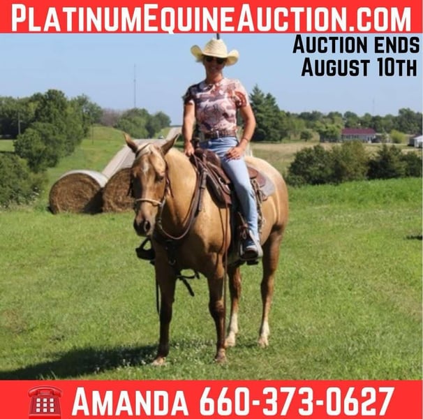 ONLINE AUCTION Place your bids at www.PlatinumEquineAuction.com Starting Bid $3500 Auction ends August 10th, 2025 Need a new saddle? Check out White Rock Saddles on our website or Facebook Amigo – Flashy, Kind, and Trail-Tested 6-Year-Old Palomino Roan Gelding | 14.1 Hands | 100% Sound | Princeton, Missouri If you’re searching for a gentle, reliable partner with a show-stopping look, Amigo checks every box. This 6-year-old Palomino Roan gelding is thick-built, well-made, and stands 14.1 hands tall. His unique color, calm mind, and easy-going nature make him a barn favorite and a true head-turner. Amigo has been used primarily for trail riding and is laid-back, quiet, and more “woah” than “go.” He has also been used on the ranch to gather cattle, has natural cow sense, and is comfortable with ropes thrown off of him. He’s confident riding out alone or in a group, and is the same every time you saddle him up. He’s been hauled to overnight camping trips, crosses ditches and water without hesitation, and settles right in wherever he goes. Amigo is respectful on the ground, stands tied patiently, enjoys baths and grooming, and loves attention from anyone. ✅ Stands for the farrier ✅ No maintenance required ✅ Up to date on worming and vaccinations ✅ Current Coggins & will come with health papers for new owner ✅ 100% sound and an easy keeper Amigo is truly one-of-a-kind, and we want him to go to a home where he will be loved and treated like family. He’s ready to hit the trails, lend a hand on the ranch, or just be your new best friend. 📍 Located in Princeton, Missouri 📞 Contact Amanda at 660-373-0627 for more info ONLINE AUCTION Place your bids at www.PlatinumEquineAuction.com Starting Bid $3500 Auction ends August 10th, 2025 Need a new saddle? Check out White Rock Saddles on our website or Facebook