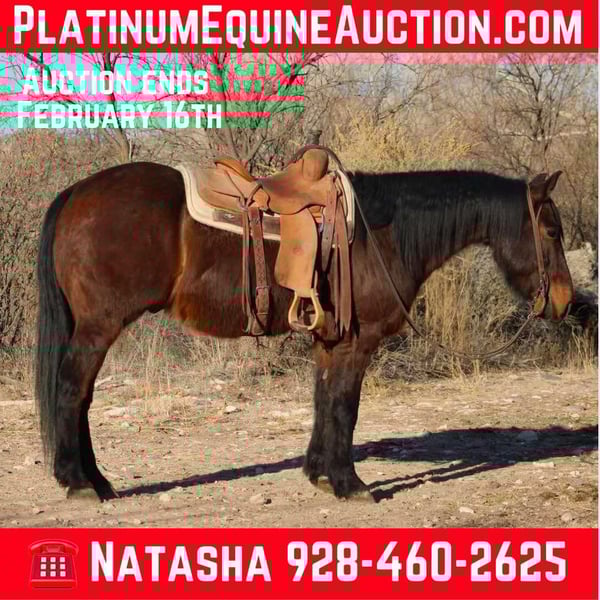 ASTA ONLINE Fate le vostre offerte su www.PlatinumEquineAuction.com Offerta di partenza 3500 dollari L'asta termina il 16 febbraio 2025 Hai bisogno di una nuova sella? Dai un'occhiata a White Rock Saddles sul nostro sito web o su Facebook! Peanut è un castrone Appaloosa di 14,2 mani, costruito come un piccolo carro armato! Ha un'ottima conformazione! Peanut ha 6 anni! Abbiamo usato questo piccolo cavallo sui sentieri un sacco. È molto rilassato e ama i boschi! Va su e giù per le colline senza problemi! Giocherà nel torrente e starà fermo mentre siete sul sentiero a fare una pausa! Peanut è stato cavalcato principalmente da una ragazza di 15 anni e le piace molto! Cammina, trotta e va al canter in un'arena e conosce i comandi! Il suo canter è un po' veloce all'inizio, ma rallenterà dopo il primo minuto o giù di lì! Ama passeggiare dolcemente, è la sua velocità preferita, ma si alza e va veloce quando glielo si chiede! È stato cavalcato anche intorno al bestiame! Ha controllato soprattutto i recinti, ma è stato anche usato per radunare il bestiame e caricare i camion! Fa tutti gli ostacoli nella stalla e ha una grande capacità di cavalcare! È in grado di fare il collo, di indietreggiare e di passare lateralmente quando gli viene richiesto! Peanut è stato cavalcato e gestito anche da bambini più piccoli! Riteniamo che Peanut sarebbe più adatto a un cavaliere che abbia un po' di fiducia, perché ha dei bottoni ed è ben rodato! Si tratta di un castrone super bello e piccolo che è la dimensione giusta per chiunque! Si comporta bene sia in stalla che al pascolo! È un facile custode e rimane grasso tutto l'anno! Se cercate un castrone di buone dimensioni da far salire e scendere e che vi faccia notare ovunque, allora è il vostro uomo! Pensiamo che sia il cavallo di colore più bello e più divertente da cavalcare nella stalla! È sano e non ha vizi! Si trova a Sonora Ky! Sentitevi liberi di chiamare Clayton Ryan 270-766-2641 con qualsiasi altra domanda o preoccupazione! Acquista con fiducia su questo cavallo unico! ASTA ONLINE Fate le vostre offerte su www.PlatinumEquineAuction.com Offerta di partenza 3500 dollari L'asta termina il 16 febbraio 2025 Hai bisogno di una nuova sella? Scoprite White Rock Saddles sul nostro sito web o su Facebook!