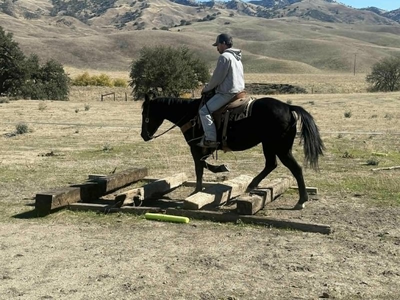 Coaltrain – The Kind That’s Coming Along Just Right Coaltrain is a 6-year-old black gelding standing 14.3 hands — built right, gentle-minded, and easy to get along with. He’s the kind you can saddle up and enjoy without a bunch of drama, but still young enough to keep shaping into anything you want him to be. He’s spent most of his time being used around the ranch to gather cattle and check pastures, and he’s taken to every job with a calm, willing attitude. He’s surefooted and confident outside — crosses water, handles brush, and makes his way through rough country without a fuss. Coaltrain’s been around dogs, tractors, traffic, and all the usual ranch commotion, and he takes it all in stride. He’s also been getting some time in the arena and learning new things every week. He’s got good basics — moves off your leg, follows his face, and stays soft in the bridle. He’s the kind that learns quick, tries hard, and doesn’t get worked up when you show him something new. We’ve been introducing him to obstacles and flags, and he’s handled everything like a gentleman. He’s got a solid foundation, a great attitude, and plenty of talent to go in any direction you’d like. Whether you want to keep him as a reliable trail horse, keep building him into a ranch versatility or sorting mount, or just enjoy him for what he already is — he’s a good one to have around. He’s easy to haul, bathe, and tie, and he’s always quiet to handle. Coaltrain’s the kind that fits a lot of riders — safe, steady, and uncomplicated, yet still with enough feel and try to keep things fun. 📞 Contact Hailey:+13039908552 🚚 Nationwide shipping available