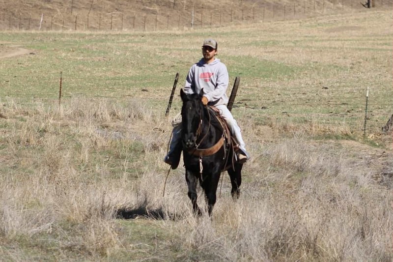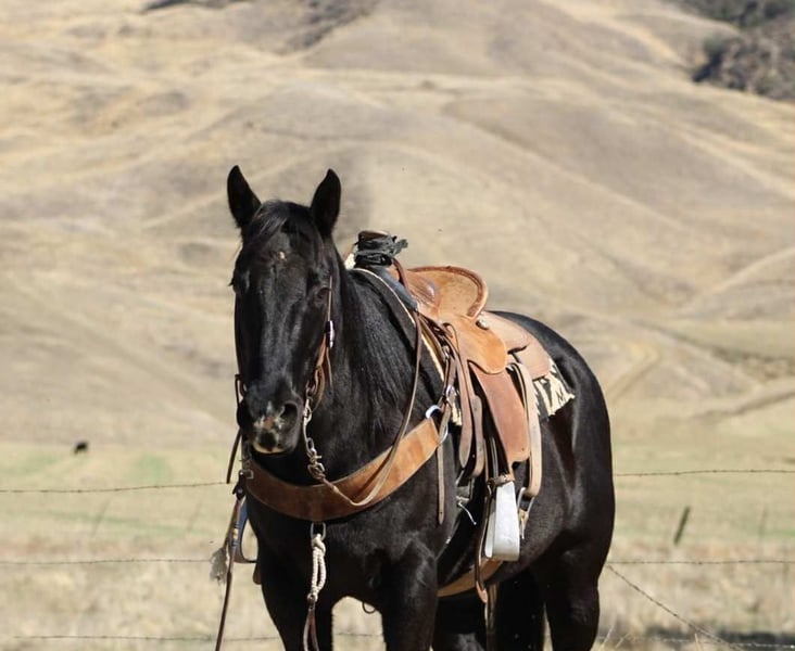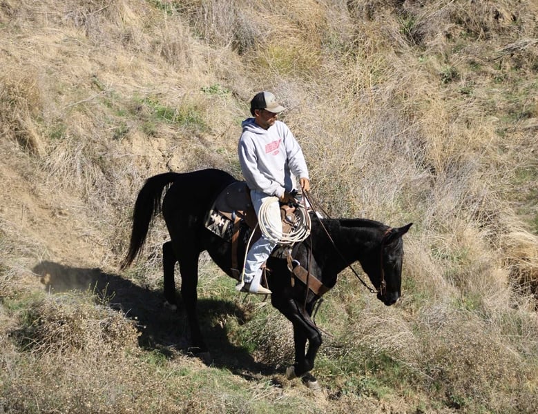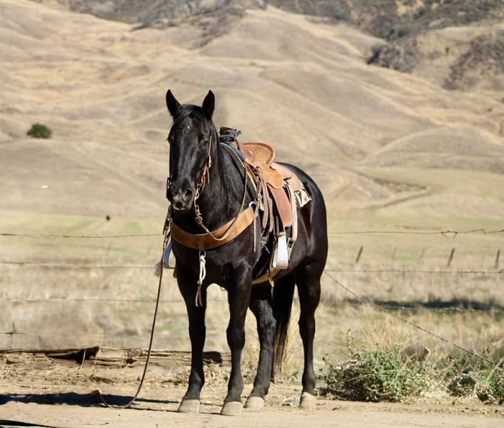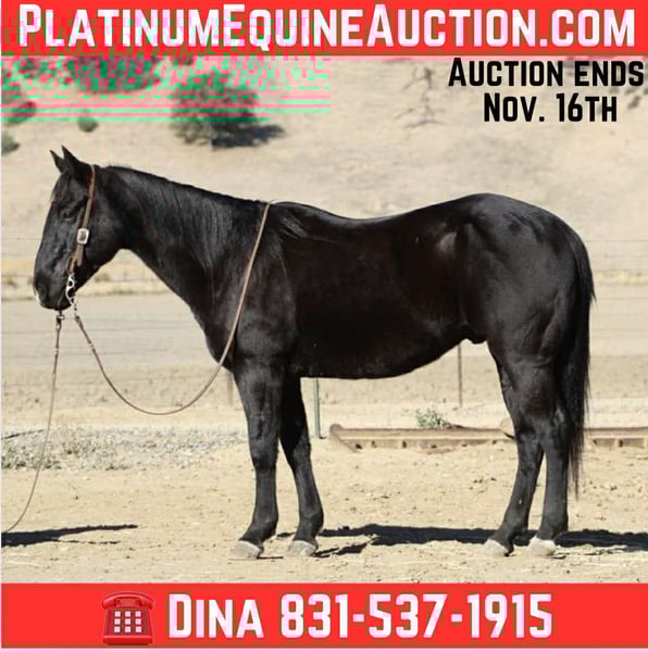 ONLINE AUCTION Place your bids at www.PlatinumEquineAuction.com Starting Bid $3500 Auction ends November 16th, 2025 Need a new saddle? Check out White Rock Saddles on our website or Facebook Coaltrain – The Kind That’s Coming Along Just Right Coaltrain is a 6-year-old black gelding standing 14.3 hands — built right, gentle-minded, and easy to get along with. He’s the kind you can saddle up and enjoy without a bunch of drama, but still young enough to keep shaping into anything you want him to be. He’s spent most of his time being used around the ranch to gather cattle and check pastures, and he’s taken to every job with a calm, willing attitude. He’s surefooted and confident outside — crosses water, handles brush, and makes his way through rough country without a fuss. Coaltrain’s been around dogs, tractors, traffic, and all the usual ranch commotion, and he takes it all in stride. He’s also been getting some time in the arena and learning new things every week. He’s got good basics — moves off your leg, follows his face, and stays soft in the bridle. He’s the kind that learns quick, tries hard, and doesn’t get worked up when you show him something new. We’ve been introducing him to obstacles and flags, and he’s handled everything like a gentleman. He’s got a solid foundation, a great attitude, and plenty of talent to go in any direction you’d like. Whether you want to keep him as a reliable trail horse, keep building him into a ranch versatility or sorting mount, or just enjoy him for what he already is — he’s a good one to have around. He’s easy to haul, bathe, and tie, and he’s always quiet to handle. Coaltrain’s the kind that fits a lot of riders — safe, steady, and uncomplicated, yet still with enough feel and try to keep things fun. 📍 Located at Longhorn Ranch – Paicines, California 📞 Contact Dina: 831-537-1915 🚚 Nationwide shipping available ONLINE AUCTION Place your bids at www.PlatinumEquineAuction.com Starting Bid $3500 Auction ends November 16th, 2025 Need a new saddle? Check out White Rock Saddles on our website or Facebook