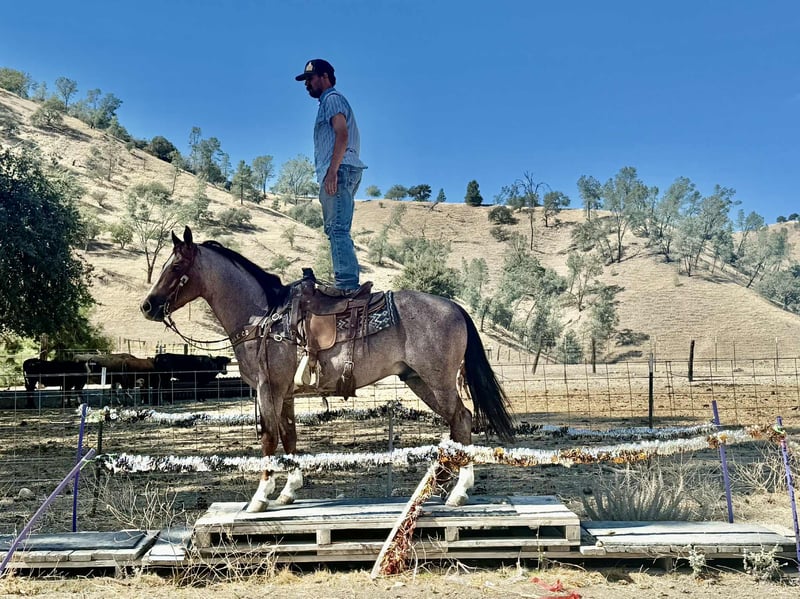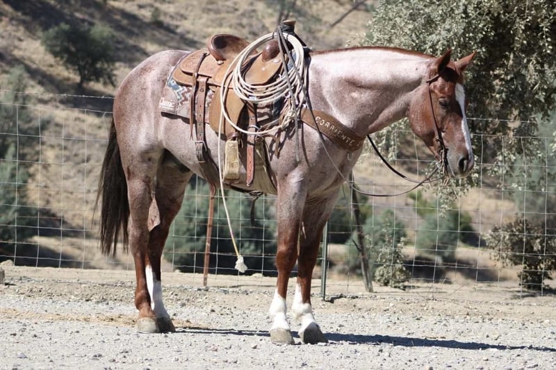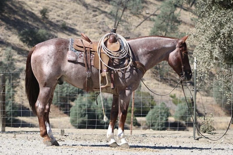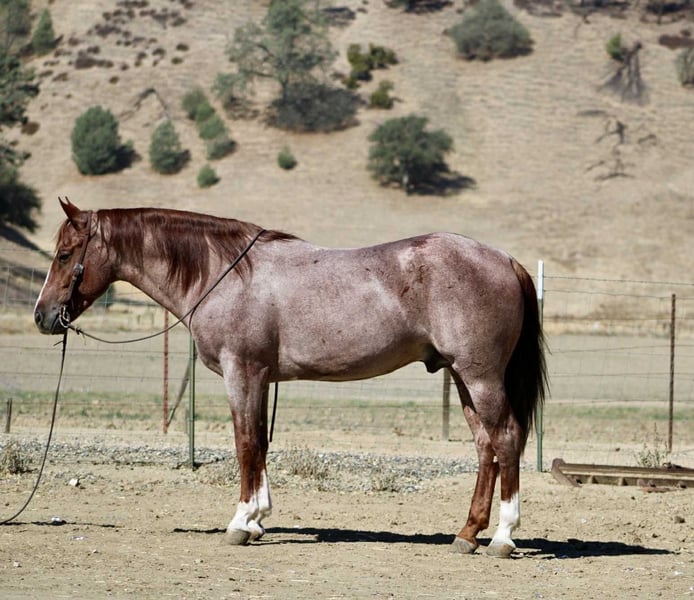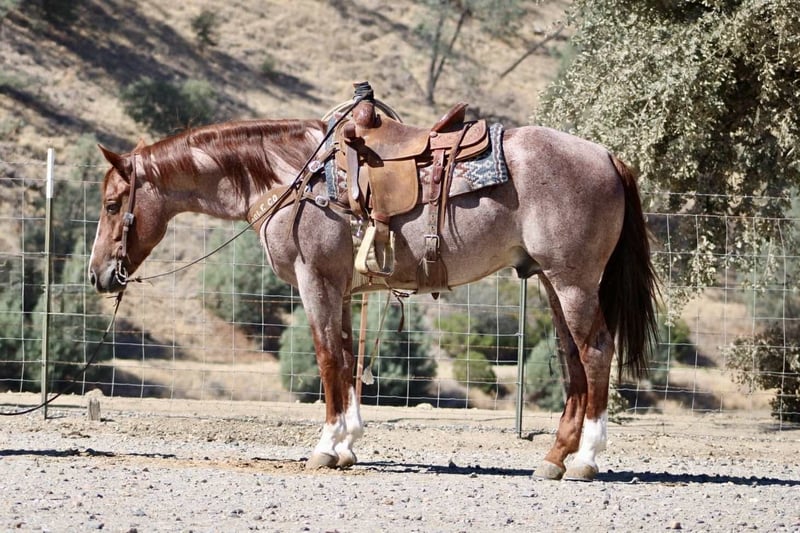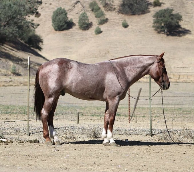 ONLINE AUCTION Place your bids at www.PlatinumEquineAuction.com Starting Bid $3500 Auction ends October 26th, 2025 Need a new saddle? Check out White Rock Saddles on our website or Facebook Blink – Safe, Fun, and Fancy All in One, 2019 Red Roan Gelding – 14.3 Hands If you’ve been searching for a horse that truly has it all — and a little extra for good measure — meet Blink. At 6 years old and standing a solid 14.3 hands, this gorgeous red roan gelding has the kind of look that turns heads and the mind that keeps them turned for all the right reasons. He’s as safe as they come, with the training, personality, and presence that make him a rare find. Blink rides soft and stylish in the arena, staying light in the bridle and responsive to your leg. He moves with ease and balance, stops nice, and carries himself collected and correct. He’s cowy, and would fit right into sorting or roping — handy, willing, and naturally talented, yet quiet enough for anyone to enjoy. Out on the ranch or the trail, Blink is rock solid. He’s seen cattle, creeks, mud, steep hills, and every kind of terrain you can throw at him. He’s traffic safe — cars, trucks, tractors, and semis don’t bother him one bit. He crosses water, steps through brush, and handles bridges, flags, tarps, dogs, and all the other ranch shenanigans like a gentleman who’s seen it all before. He’s personable and steady on the ground, easy to catch, shoe, haul, and tack. Blink stands tied, rides off quiet every time, and has the kind of good manners that make him a pleasure to own. He’s the horse you can count on whether it’s a long ranch day, a quiet trail ride, or a trip down a busy road. Blink is the total package — gentle, fancy, and dependable, with just the right amount of class to make him stand out in any crowd. He’s the kind of horse you’ll be proud to own and even prouder to ride. They don’t come along like this often — safe, fun, and full of heart from head to tail. Call or Text Dina with Longhorn Ranch 831-537-1915 – Located in Paicines, California, Nationwide Shipping Available! ONLINE AUCTION Place your bids at www.PlatinumEquineAuction.com Starting Bid $3500 Auction ends October 26th, 2025 Need a new saddle? Check out White Rock Saddles on our website or Facebook