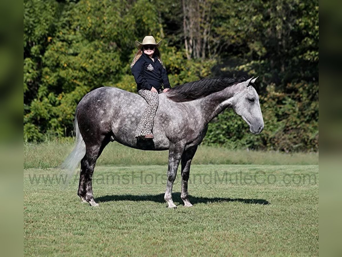 Mercedes is consigned to the Cowgirls Cadillacs sale in Wickenburg, AZ on February 21-22, 2025. Make plans to attend, you can bid in person or bid online. You can preview any horse in Mt. Vernon, KY before they head to Wickenburg, AZ or preview them when they arrive at the sale. Shipping can be arranged to any state or Canada. You can get more info about the sale at www.CowgirlCadillacs.com THESE Horses ARE NOT AVALAIBLE FOR PRIVATE PURCHASE Get your clipboard out and sharpen your pencil, ALL of those boxes are gonna get checked when you see Peppy Cat Dulce aka Mercedes… standing 15H tall and just about as wide, Mercedes is a 2019 model Reg AQHA, gelding with dapples from head to toe! Not only does he check that box in the looks department, take a look at his pedigree as he is a grandson of High Brow Cat with his dam going back to Colonel Freckles. Mercedes is bred to ride and bred to be a cow horse! He has had reining training and has worked the flag. He has been used out on the ranch for pasture roping and doctoring. Mercedes has team sorted and has been roped on out of the box. He lopes slow and easy in nice circles, spins both ways, slide stops… he has the moves to go along with the good looks! If the ranch work is done and you just want to go for a relaxing trail ride… steep slopes, rocky terrain, creeks, logs, ditches… he crosses it all with ease and is never in a hurry! If you have a free Saturday and want to go show him, he will excel in the Ranch Classes as well! Mercedes is the horse that can do any job, ride anywhere, the whole family can ride him and the whole family will love! Looks, Pedigree, Training, Experience, Versatility, Safe… he truly checks ALL the boxes!!! Call 606-308-2461 for more info.