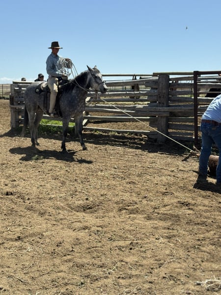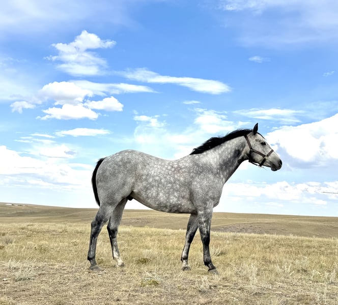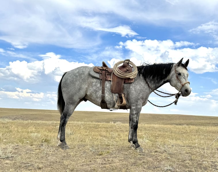 🍂 𝓐𝓾𝓽𝓾𝓶𝓷 𝑨𝑳𝑳 𝑺𝑻𝑨𝑹 𝑳𝑰𝑵𝑬𝑼𝑷 🍂 Happening now thru MONDAY | OCTOBER 6th - Available EXCLUSIVELY on HorseBid's website! For more details and to register visit: www.Horsebid.com CONSIGNOR CONTACT: Jeremy James 406-781-2227 LOCATION: Power, MT BREED: AQHA REGISTERED: Yes REGISTERED NAME: ROLLING ROYAL COL COLOR: Gray HEIGHT: 15 AGE: 6 GENDER: Gelding ROLLING ROYAL COL Meet “Amigo”. He is a 2019 AQHA gelding, standing at 15 hands. Amigo is quiet minded, eager to please and reliable in any situation. He’s an honest heart and has the ability to boost the confidence of any beginner or timid rider. He has been ridden by young and old riders alike and he always takes care of his “person”. He is very patient, especially with youth riders just starting out. If it’s learning to ride or learning to rope, Amigo is solid and steady. Even if you just need a “babysitter” for a while, he definitely fits the bill. I honestly can’t say enough good things about Amigo. Amigo is also steady and solid for your intermediate and advanced riders. He’s a great cow horse - ropes, sorts, side passes, doctors out in the pasture, opens gates and handles himself well under pressure in and out of the working pen. No challenge is too big for this boy. You can rope about anything - he knows his job. He’s a great partner at whatever task you set out to accomplish Amigo travels on any sort of terrain. He pushes cattle and a band of horses almost everyday on the ranch. He doesn’t barn or buddy sour, and rides off alone without hesitation. Amigo is use to cow dogs at his heels, and doesn’t get bothered by things along the way. He is the easiest to catch in any pen or pasture. He stands quiet for everything from grooming to saddling to shoeing. He definitely loves attention and the occasional treat! Amigo checks all the boxes as a great all-around dependable ranch and family horse who’s had lots of great experience. Amigo will be your lifelong buddy. Amigo is located in Power, MT - we are happy to help you get in contact with transport services for around the country. For more information call Melissa or Jeremy James at 406-781-2227.