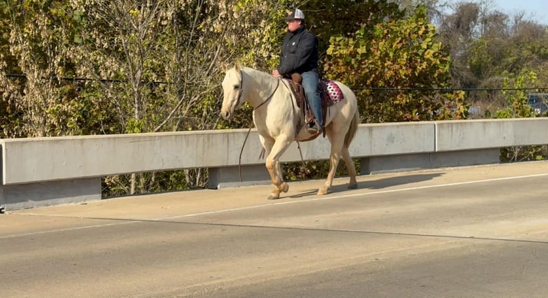 ONLINE AUCTION Place your bids at www.PlatinumEquineAuction.com Starting Bid $3500 Auction ends December 21st, 2025 Need a new saddle? Check out White Rock Saddles on our website or Facebook CHEDDAR — WHERE QUALITY, QUIETNESS & CLASS COME TOGETHER 6-Year-Old Palomino Gelding • 15.0 Hands • Refined • Reliable • Meet Cheddar, the kind of gelding that turns heads for his color and keeps them turned with his kindness. He’s a golden, polished gentleman with a heart as soft as his shine—steady, seasoned, and right in the sweet spot of his life. Cheddar has lived the real deal outdoor life. He’s been ridden across mountain ranges, hunted off of, and has packed gear through the quiet backcountry. He’s seasoned on long, week-long camping trips and knows how to travel big country with confidence and style. He crosses water, logs, bridges, brush, and terrain of every kind like he’s done it a thousand times—which he essentially has. Where most horses blink at traffic, Cheddar doesn’t even flick an ear. This gelding is as solid in town as he is on the trail. Ride him right down the street with cars buzzing past, trucks rolling by, and everyday commotion—it doesn’t rattle him. He’s been down Main Street, through neighborhoods, and into busy areas without a single worry. A horse equally comfortable under blue skies or streetlights is a rare one. Cheddar has been around cattle and shows every bit of promise to make a handy ranch horse. With his steady way of traveling and that level, thinking mind, he’s ready to step into more ranch work and look good doing it—because this gelding is built to impress. He’s been hauled from Oklahoma to Texas, through multiple National Parks, and has taken new scenery, new challenges, and new adventures all in stride. Cheddar unloads calm, rides off relaxed, and handles new places with class. Cheddar has more outside seasoning than arena miles, but he’s coming along beautifully. He’s learning his walk–trot–lope circles and gets smoother and more polished each time he steps in the arena. With his willingness and foundation, finishing him out will be easy. He’s almost there. Cheddar is an in-your-pocket, meet-you-at-the-gate kind of gelding. He’s soft, gentle, and genuinely enjoys people. Saddle him cold, saddle him warm, saddle him after time off—he stays quiet and honest. Rides bareback also. He rides in a halter, hackamore, or bit, has solid natural feet, and stays barefoot with no issues. Stall him or turn him out—either way, he’s content and easy. Cheddar is the full package: beauty, brains, experience, and the kind of temperament people spend years searching for. If you want a golden gelding that can ride the mountains, handle the streets, work the ranch, and babysit the family—this is the one. Don’t miss your chance. Horses with this kind of style and steadiness don’t come up often. We are open to anyone interested in him to schedule a time to come see him or if you can’t make it schedule a FaceTime showing to see him. If you need help with transport don’t hesitate to ask we have a list of reputable haulers that can get him safely to your doorstep WORLD WIDE including, Alaska , Mexico, Hawaii, Canada and anywhere in between from Stephenville, TX. Call Michelle with M$ Performance Horses 661-817-9120 for more info. ONLINE AUCTION Place your bids at www.PlatinumEquineAuction.com Starting Bid $3500 Auction ends December 21st, 2025 Need a new saddle? Check out White Rock Saddles on our website or Facebook