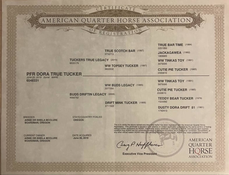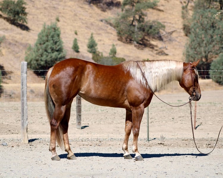 ONLINE AUCTION Place your bids at www.PlatinumEquineAuction.com Starting Bid $3500 Auction ends September 7th, 2025 Need a new saddle? Check out White Rock Saddles on our website or Facebook PFR DORA TRUE TUCKER affectionately known as, Honey, a 2019 AQHA mare who is as sweet as her name. She’s a striking golden sorrel with a long, flaxen mane and tail that make her truly eye-catching in and out of the arena. Standing a solid 15HH, Honey is beautifully balanced, well-built, and ready to go in any direction. This mare isn’t just about looks, she’s got the brains and training to match. Honey travels out calm and collected, with a naturally low headset and smooth, pretty movement in every gait. She has a soft collected stop, easy reverse, and is very user-friendly, making her a great partner for riders of all levels. Honey has proven herself to be versatile and dependable. She’s been used in summer camps to teach children the fundamentals of riding and horse care, showing just how patient and willing she is. On the trails, she’s a rock solid mount who goes wherever you point her, crossing water, bridges, brush, and rough terrain with confidence and ease. She’s also a dream to handle on the ground. Honey stands quietly for tacking up, is great for the farrier, clips like a pro, and has impeccable stall and pasture manners. She loads and hauls in all trailers quietly. Her puppy dog personality shines through in everything she does. Honey loves people, thrives on attention, and is happiest when she’s pleasing her rider. Whether you’re looking for a trustworthy trail companion, a family horse, or a mare with the foundation and build to go on in multiple disciplines, Honey checks all the boxes. She is the kind of horse you’ll enjoy every single day safe, talented, and full of heart. She is located in Bitterwater, CA. for more info or to come see her in person contact Cheyenne Rey 831-537-8746. ONLINE AUCTION Place your bids at www.PlatinumEquineAuction.com Starting Bid $3500 Auction ends September 7th, 2025 Need a new saddle? Check out White Rock Saddles on our website or Facebook