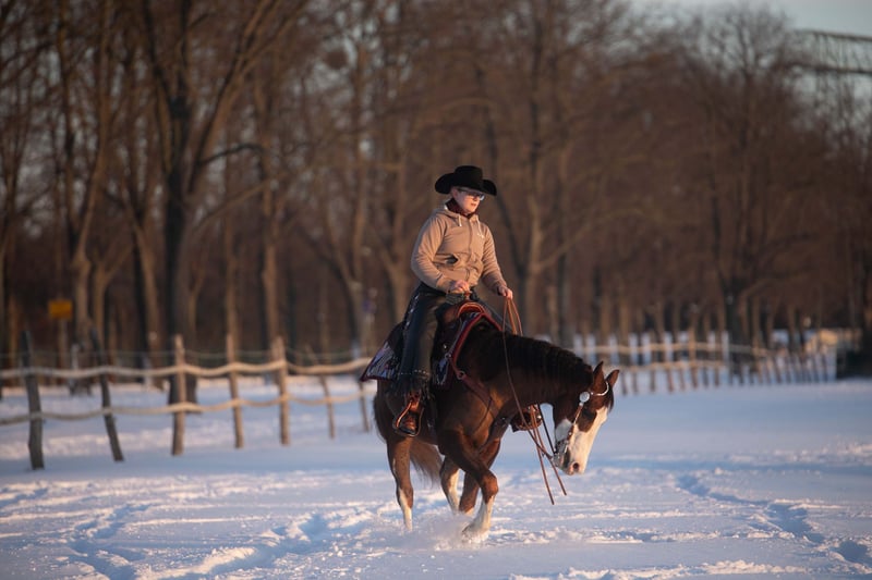 Carli ist 2019 geboren und doppelt registriert (Quarter & Paint Horse). Sein Stockmaß ist 1,52m. Die Abstammung ist im letzten Bild zu sehen. Er wurde 3 jährig kastriert, damit er im Pensionsstall in Gruppenhaltung leben kann. Er ist ein talentiertes und motiviertes Pferd mit guten Bewegungen. Allerdings braucht er dafür einen sicheren und erfahrenen Reiter. Er hat eine gute Grundausbildung in den Disziplinen Ranch Riding, Reining, Trail und Showmanship. Er ist ebenso in der Horsemanship platziert gewesen. Im Gelände ist er brav und durch kein Gefährt zu beeindrucken. Auch Ausritte mit Hund in Begleitung sind für ihn eine willkommene Abwechslung. Den täglichen Umgang mit dem Menschen und Hund ist er gewöhnt. Er läuft barhuf und wurde bisher nur für die Reining beschlagen. Man kann ihn zuverlässig allein verladen, da er durch Schicken unkompliziert in den Anhänger geht. Dadurch waren wir viel zu Kursen unterwegs. Auf fremden Anlagen ist er brav und steht ruhig in der Box oder auf dem Paddock. Carli hat eine 1A große AKU mit Röntgenbildern von 12/2021, die gerne auf Wunsch wiederholt werden kann. Er wurde regelmäßig (turnierkonform) geimpft und bekam jährlich die Zähne gemacht. In der Herde ist Carli ein rangniedriges Pferd, weshalb wir eine Boxenhaltung oder Offenstallhaltung zu zweit / dritt für ihn empfehlen. Er wird verkauft, da er leider für die großen Shows nicht die notwendigen Nerven mitbringt. Wir wünschen uns für ihn einen ambitionierten Freizeitreiter, der Feingefühl und Geduld besitzt. Platz vor Preis 14.900€ VB Bei ernsthaftem Interesse ist ein Probereiten erwünscht und besteht die Möglichkeit Videos per WhatsApp zu bekommen. Ich bitte von Anfragen wie „Was ist der letzte Preis?“ oder „Reittourismus“ -> Probereiten ohne Kaufabsicht abzusehen.