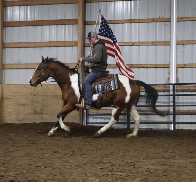 𝐉𝐀𝐍𝐔𝐀𝐑𝐘 ⭐️𝑨𝒍𝒍 𝑺𝒕𝒂𝒓 𝑳𝒊𝒏𝒆𝒖𝒑⭐️ Happening now thru MONDAY | JANUARY 26th - Available EXCLUSIVELY on HorseBid's website! For more details and to register visit: www.Horsebid.com CONSIGNOR CONTACT: Blackstone Stables 248-390-6831 LOCATION: Howell, MI BREED: Quarter Horse REGISTERED: No REGISTERED NAME: Wesley COLOR: Tri-colored paint HEIGHT: 15.1 AGE: 7 GENDER: Gelding Meet Wesley! Talk about a flashy guy! He stands a sturdy 15.1hh at 7 years old. Wesley is a beautifully marked tri-colored paint gelding. He is very polite on the ground. He stands tied, stands for a bath, stands to be groomed and tacked. He has spent much of his life on the trails just being a laid back trail horse. With that being said he's well traveled and not reactive. Wesley has seen woods, water and wildlife. He's been down back roads and thru open fields. He's always game to go on an adventure. He will gladly take the lead but will also follow along. He rides out alone as well. He is a very simple cluck to go and pull to stop kind of ride. His gaits are so comfortable you may think you're sitting on a cloud! Recently Wesley has been started on some more formal arena work and is progressing very well. He is eager to learn and has a willing demeanor. With some finishing touches he could clean up in the show ring! He is a best-friend type of guy looking For his next rider to hit the trails or continue arena training!