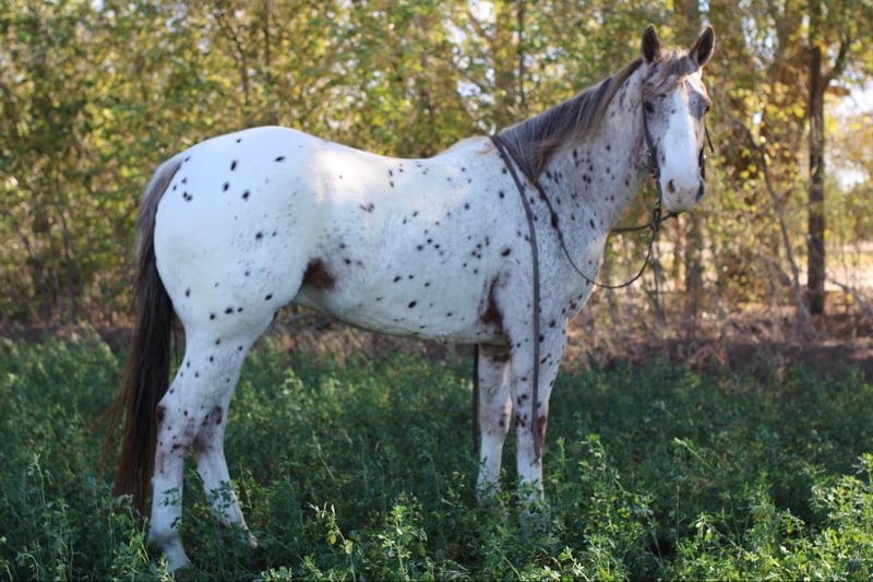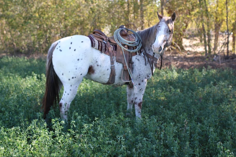 ONLINE AUCTION Place your bids at www.PlatinumEquineAuction.com Starting Bid $3500 Auction ends December 8th, 2024 Need a new saddle? Check out White Rock Saddles on our website or Facebook! Mr. Beans Is a fancy 5 yr old Apaloosa gelding, he stands 15’1 and will stand out anywhere you go. He’s been a joy to have in our program we’ve done a little bit of everything with him . He’s had lots of outside miles in rocky country and sandy hills, he’s extremely sure footed and knows how to travel in tough terrain. We also do a lot of arena riding, from roping the smarty out of the head box or loping circles in both directions. He knows his leads and will pick them up off your leg pressure. Beans is a super smooth traveler and is a comfortable ride. Beans likes party’s he’s been the horse we bring out for the birthday party’s to lead the kids around on. He’s very personable and likes treats and being loved on. We’ve used him on the ranch as well pushing cows from one pasture to another or bringing up roping steers during the practices. He’s an all around safe gelding that would fit anyones family or program. Mr beans is easy to catch, saddle, shoe, load, unload and ties. He will ride through water, rides in traffic, good with dogs, bikes, other animals. He’s pretty laid back and easy going, He’ll be a a standout anywhere he goes. He is 100% sound . Please call for any questions you may have about Mr.beans thank you! Lauren Lara 915-474-5453 Located in El Paso, TX. ONLINE AUCTION Place your bids at www.PlatinumEquineAuction.com Starting Bid $3500 Auction ends December 8th, 2024 Need a new saddle? Check out White Rock Saddles on our website or Facebook!