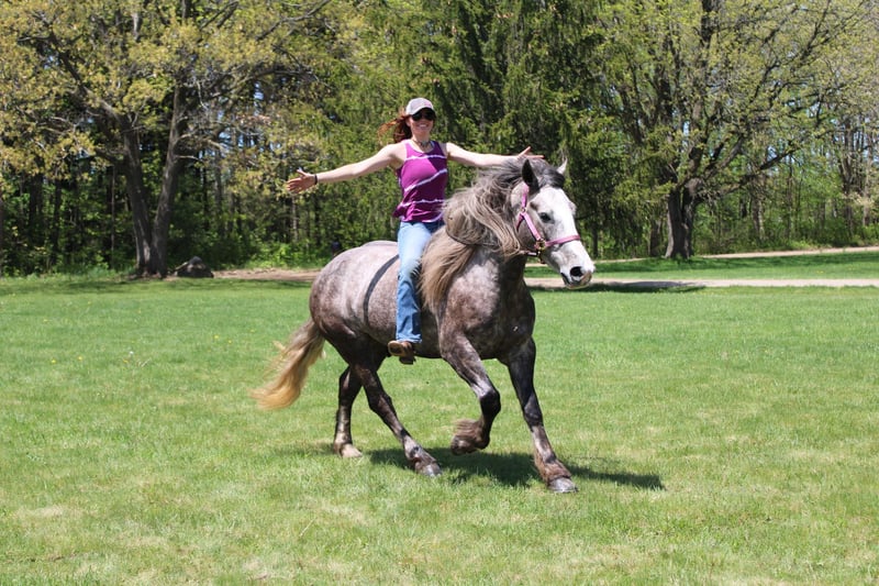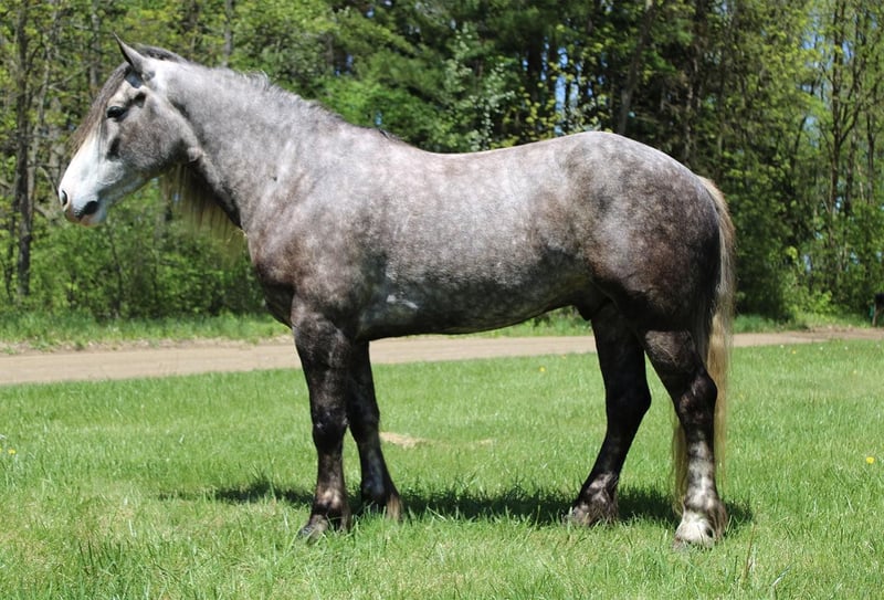 ONLINE AUCTION Place your bids at www.PlatinumEquineAuction.com Starting Bid $3500 Auction ends June 9th, 2024 Need a new saddle? Check out White Rock Saddles on our website or Facebook! “Cinnamon Twist” or Cinnamon as we call him is nothing short of spectacular. From his mind to his color there’s nothing he’s lacking. Cinnamon is a 15.3hh stout made Drum horse (Gypsy Vanner Percheron cross) dappled grey gelding. He is 5 years old. Cinnamon has an incredible mane and tail and light feathering. He has gorgeous conformation and his dapples have dapples. Not only is he stunning, he is sensible. Cinnamon will walk, trot, and canter with ease. All of his gaits are as comfortable as floating on a cloud. He has had years of natural horsemanship training and will ride completely tackless at the walk, trot, canter and even over jumps. He moves off of your seat and leg effortlessly. He has been in the city, in traffic, in the woods and in water. He has been in the arena and the fields. This guy will go anywhere with any rider onboard. He goes English, Western, and even bare back. He knows how to drive and loves it. Cinnamon has all the bells and whistles when it comes to his trick training. He will sit, lay down, and bow with a simple tap on his chest or ankle. He has seen tarps, umbrellas, yoga balls, bridges, inflatable dinosaurs, and much more. You will be hard pressed to spook him. This gelding has been on several hunter paces. He has also been used to round cattle. He jumps in beautiful form. He has been to schooling shows and used in lessons for kids as young as 5 years old. This is a unique find that would be an asset to anyone looking for a feathered horse that anyone can get along with anyone in any situation. Please call or text Ellesse Schwartz at 248-390-6831. Cinnamon lives in Howell, MI 48855. ONLINE AUCTION Place your bids at www.PlatinumEquineAuction.com Starting Bid $3500 Auction ends June 9th, 2024 Need a new saddle? Check out White Rock Saddles on our website or Facebook!