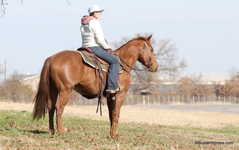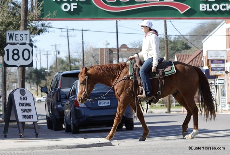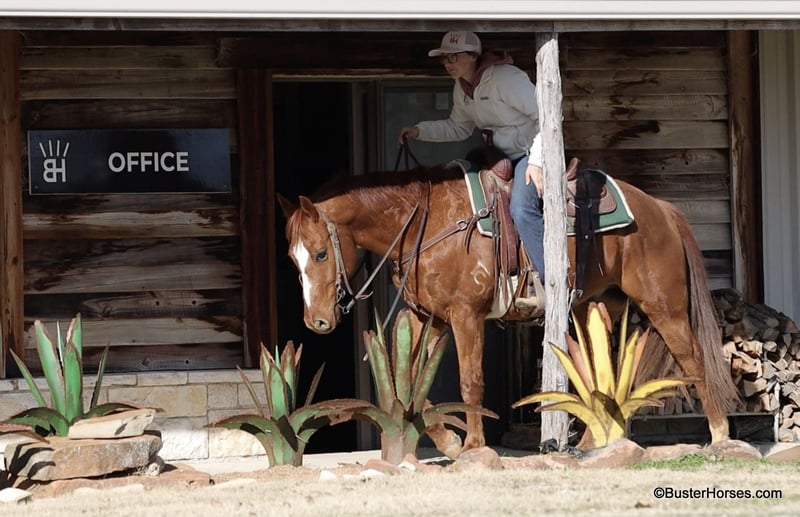 ONLINE AUCTION Place your bids at www.PlatinumEquineAuction.com Starting Bid $3500 Auction ends February 9th, 2025 Need a new saddle? Check out White Rock Saddles on our website or Facebook! Roofus came off of a really sweet older gentleman who was using him to check his fences and cows. He also rode him in a couple of small town rodeo parades, grand entries, and used him for parking and traffic control. He has been super quiet with us here and he had been turned out for a whole month when we got him. He rode off like he was ridden yesterday. He is super level-headed, chill, and not much of anything bothers him. He has a naturally-level/low head carriage and the cutest little typey quarter horse head. He is a great size at only 14.2 hands – but still very stout and wide to carry most any size adult. He’s easy to step on and off of and easy to throw your saddle up on. He stands dead quiet for mount and dismount on a big long loose rain and will walk around anywhere you point him on a big long loose relaxed rein. He is very confident out alone and did a lot of his rides alone; he happily leaves the barn and leaves the other horses. He rides well in a big group as well and doesn’t really care where he is in the marching order. He has a cute little trot and lope, he catches both of his leads well, and has a nice simple stop on whoa. He hops right in the trailer, hauls and unloads quietly, and will tie to the trailer all day long. If you are looking for a pleasant companion to keep turned out at your place and be able to get on and enjoy every ride – then this sweet boy would be a great one to look at. Please feel free to call us anytime if you have any questions about Roofus, contact Buster Horses Ashley 214-605-7174 Roofus has front shoes on, his teeth were just done by our equine dentist last week, he was just shod last week as well, and he also was dewormed. He is in great shape, a little on the fat side – and is ready to go to work doing whatever job you have for him. Watch his video, and to see additional videos, go to our website: BusterHorses.com or our Facebook page Buster Horses Roofus is located in Weatherford, TX – one hour from Dallas / Fort Worth International Airport. He is an easy day trip, or fun overnight trip to come and try out, from anywhere! We are experienced, knowledgeable sellers, and we can help with quickly arranging affordable shipping to any buyer’s location – we have experience shipping worldwide – including regularly to Hawaii, Canada, Mexico, Europe, and South Africa. ONLINE AUCTION Place your bids at www.PlatinumEquineAuction.com Starting Bid $3500 Auction ends February 9th, 2025 Need a new saddle? Check out White Rock Saddles on our website or Facebook!