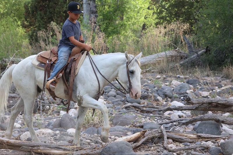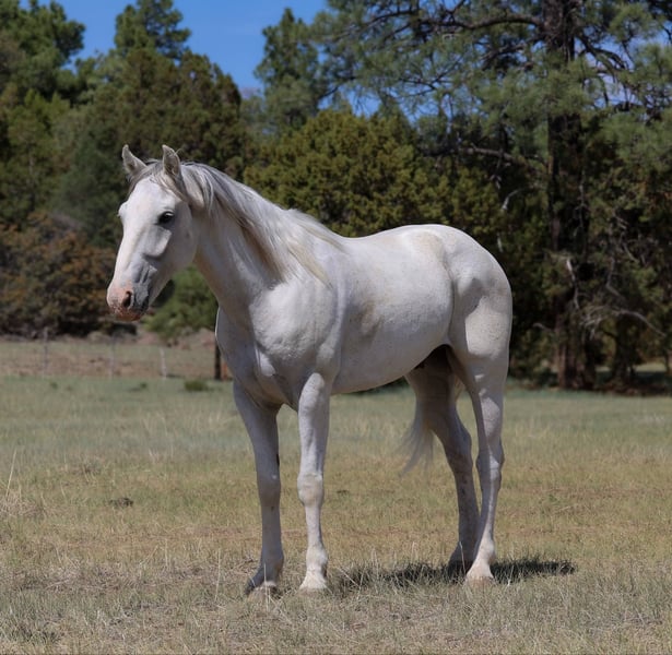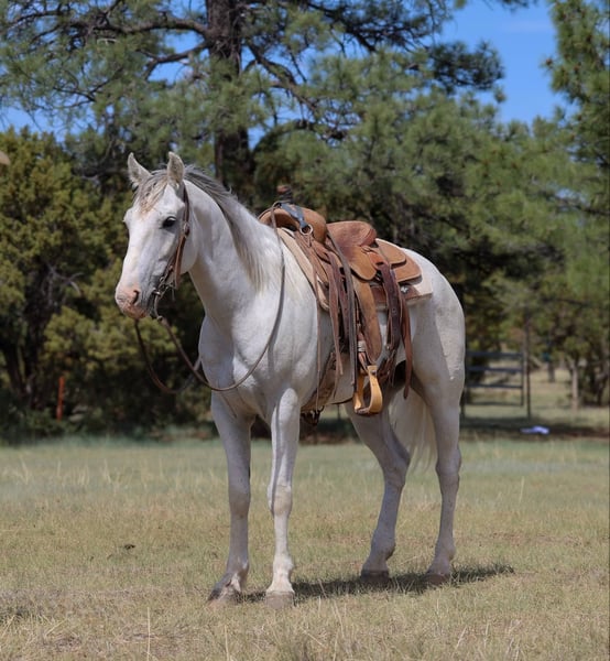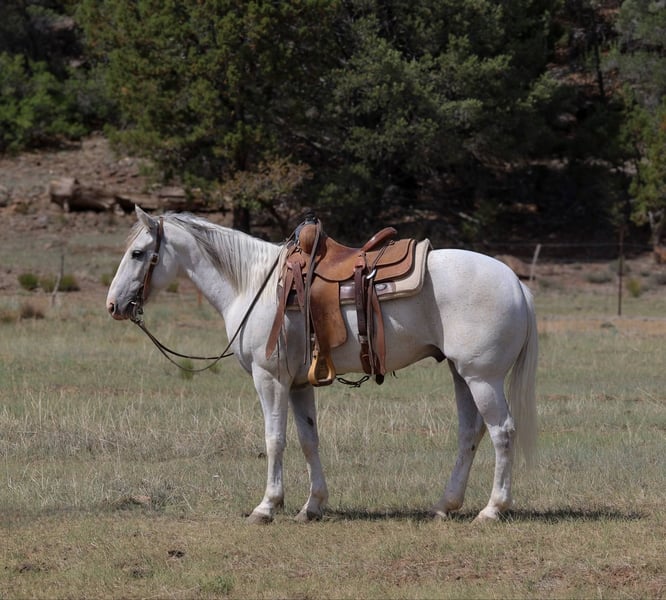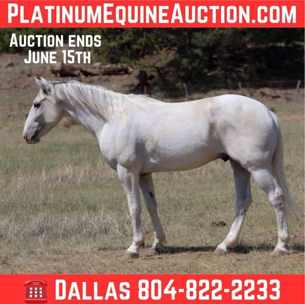 ONLINE AUCTION Place your bids at www.PlatinumEquineAuction.com Starting Bid $3500 Auction ends June 15th, 2025 Need a new saddle? Check out White Rock Saddles on our website or Facebook! Chex is a grade 7 year old gelding standing 14hh and stout! This awesome little gelding has been ranched on a ton and is no stranger to a long days work. We’ve done absolutely every job you can think of around the ranch and he’s handled it all like a champ. Drug calves to the fire, doctored, loaded trucks, made big circles in the rough country, and rode countless miles of fence. This stout made little gelding has tons of heart and grit, and will go all day long! There hasn’t been a single thing that phases this guy outside, thick brush, rough rocky slopes, flowing water, speeding traffic. You name it and Chex will bulldoze on through it with ease, being surefooted as can be every step of the way. He will also walk, trot, and lope both ways, has a good neck rein and a great stop. If you’re looking for a sturdy and reliable trail mount or a good using horse for your handy kiddos then look no further, Chex is your guy! Comes with a clean coggins and health!! Transport can easily be arranged anywhere in the US!! Located in Camp Verde, AZ. Contact D/C Equine Services Dallas 804- 822-2233 with any questions. ONLINE AUCTION Place your bids at www.PlatinumEquineAuction.com Starting Bid $3500 Auction ends June 15th, 2025 Need a new saddle? Check out White Rock Saddles on our website or Facebook!