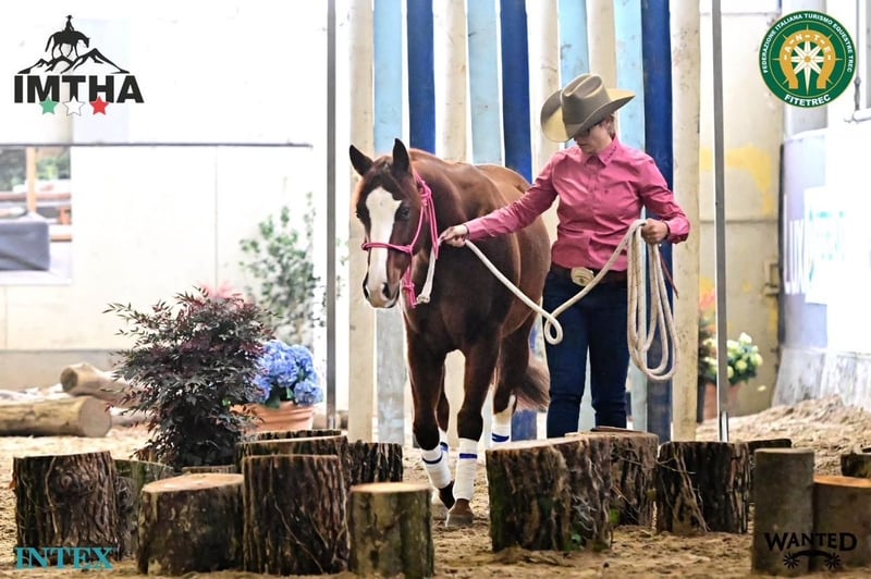 8 years old sorrel gelding, with two years of experience in Mountain Trail shows and training for Ranch disciplines in general. Trained to go with one hand, the horse has a high level of schooling and very nice experience, both indoor and outdoor, also in trail riding. The horse is reserve regional champion and reserve Italian champion in Mountain trail in Italy. It was bred by my family and schooled in my stable, no other owners were involved. The horse is cute and sweet, but requires a rider of experience in western disciplines. Great for youth or non pro. Since it's small, a woman would be best. He's a direct nephew of SPAT OLENA (by mum) and ARC PLAY WITH PRICES (by father), and also his granddam was Ltd Open Champion in the USA Reining Derby. It's a cutting x reining cross.
