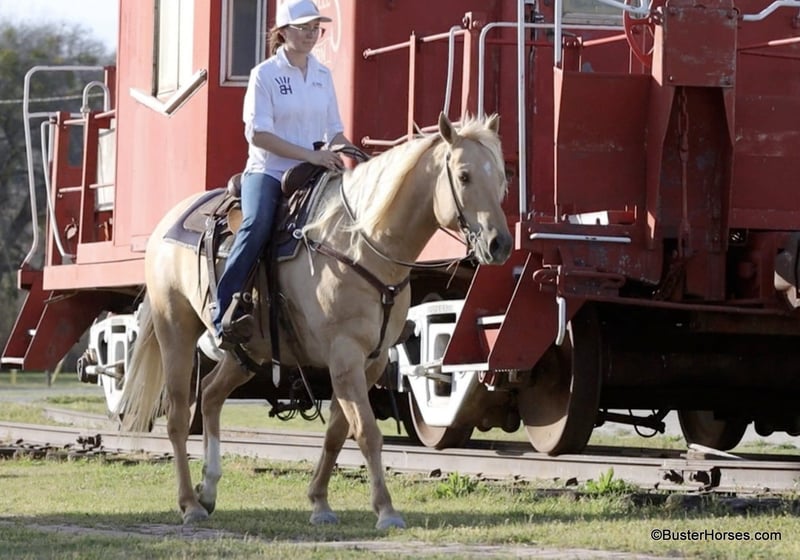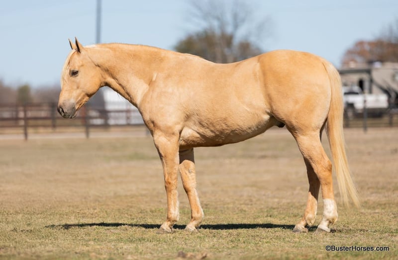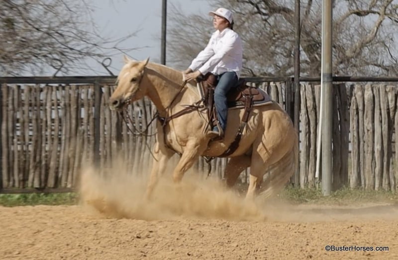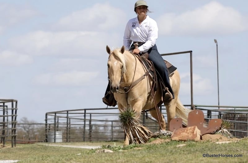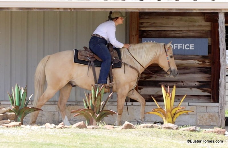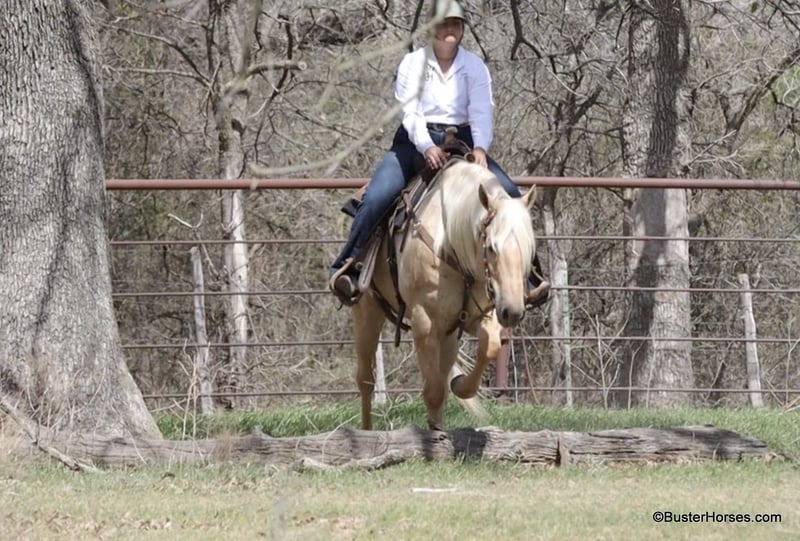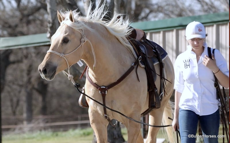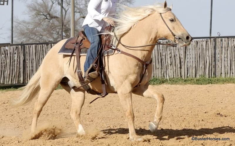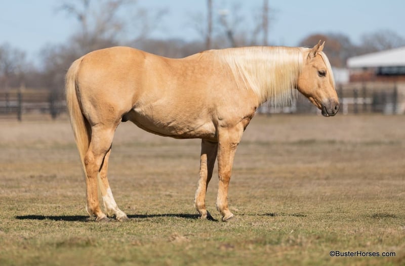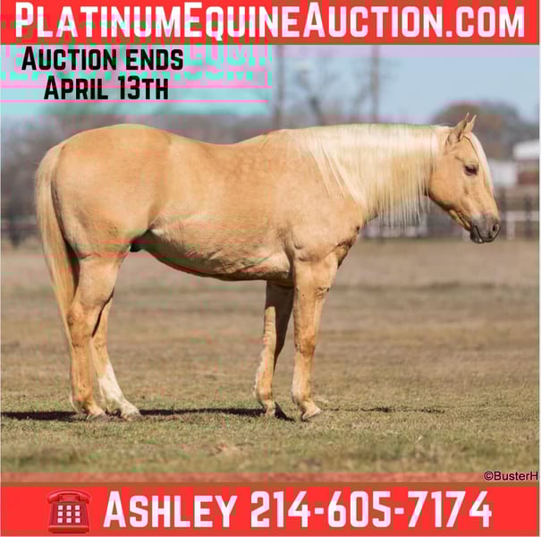 ONLINE AUCTION Place your bids at www.PlatinumEquineAuction.com Starting Bid $3500 Auction ends April 13th, 2025 Need a new saddle? Check out White Rock Saddles on our website or Facebook! Jalapeno is a stunning palomino gelding who is super thick made, only 14.2H, and the perfect age at 7 years old. He has naturally great hair just living outside in the pasture, he doesn’t live in the show barn or the fitting barn. He has a huge tail, a forelock that you have to band to keep out of his eyes -and a thick, long flowing, mane that touches his shoulder. Jalapeno has mostly been used around the ranch and he has had a little bit of training in the roping pen – but Jalapeno would absolutely love to be somebody’s friend and pet trail horse. He is super confident outside – been tons of miles, he will cross creeks, ditches, and logs without hesitation – and he is just as comfortable out alone as he is with other horses. He has an easy comfy little jog and lope, catches both leads easily, and he travels out on a nice long loose rein. He has about as much stop and rate as you could put in a horse – he constantly hunts his stops, and loves to bury his butt in the ground. Jalapeno is easy to catch – extremely friendly outside, he usually comes up to you and if you go out to catch other horses then he wants you to catch him too. If he sees the trailer hooked up he is over there as close as he can get to it, wanting to go with you. He is an easy keeper, just lives outside on a normal/light ration. He is great to saddle and bridle, good for the farrier, and great for a bath. He hops right on the trailer without hesitation, stands quietly being hauled, and he also stands quietly tied to the trailer. Jalapeno just wears front shoes and his feet were just reset last week – he was barefoot for quite a while, he has really great feet, and could easily go barefoot again. His teeth were just done by our equine dentist last month, he had a routine look over and adjustment by the chiropractor, he also had his sheath cleaned, his ears preemptively treated for ticks, and he was also dewormed at that time. He will arrive to his new owner up to date on everything, and ready to go. He is in great shape and in good health. Watch his video, and to see additional videos, go to our website: BusterHorses.com or our Facebook page Buster Horses or call Buster Horses Ashley 214-605-7174 with any questions. Jalapeno is located in Weatherford, TX – one hour from Dallas / Fort Worth International Airport. He is an easy day trip, or fun overnight trip to come and try out, from anywhere! We are experienced, knowledgeable sellers, and we can help with quickly arranging affordable shipping to any buyer’s location – we have experience shipping worldwide – including regularly to Hawaii, Canada, Mexico, Europe, and South Africa. Check our website for buyer reviews, more videos of Jalapeno, additional info, etc: BusterHorses.com/Palomino-Jalapeno ONLINE AUCTION Place your bids at www.PlatinumEquineAuction.com Starting Bid $3500 Auction ends April 13th, 2025 Need a new saddle? Check out White Rock Saddles on our website or Facebook!