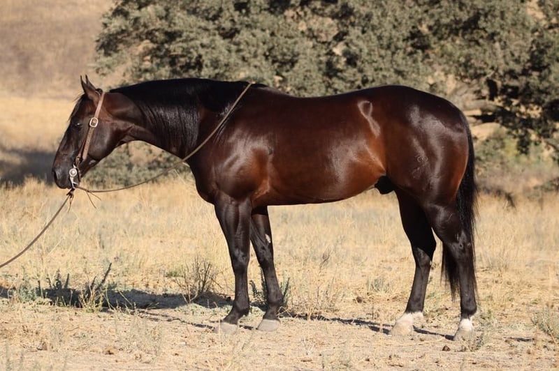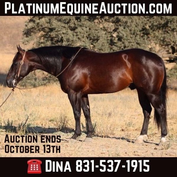 ONLINE AUCTION Place your bids at www.PlatinumEquineAuction.com Starting Bid $3500 Auction ends October 13th, 2024 Need a new saddle? Check out White Rock Saddles on our website or Facebook! We are proud to offer Cali, This beautiful 6 year-old dark bay gelding standing 14.3 hands who embodies everything you could wish for in a horse he’s as gentle as a kitten and wonderfully easy-going! With his calm disposition, this boy can navigate tarps, blowing tape, and even car washes without batting an eye. Picture him gliding over teetering bridges and calmly handling traffic with cars, trucks, and bicycles zooming by—no problem at all! Whether you’re looking to saddle up or go bareback, Cali is your guy; he rides beautifully either way. Started out of the box on the heel side? He’s already excelling there too! This gentle soul has gathered cows during branding season in the corral and exhibits perfect smoothness in both arenas and trails. His lope is dreamy, boasting traditional transitions between gaits with impressive stops and easy backup that makes riding feel effortless. Trail riding is a breeze; he maneuvers steep hills, crosses logs effortlessly, and loves exploring state parks while discovering new places with enthusiasm. Forget about stress because when it comes to trail adventures crossing deep water or tackling treacherous terrains Cali excels at keeping riders safe above all else. You won’t find a more laid-back yet reliable companion than this stunning dark bay treasure; whether it’s outings around town or nature spots alike the experience is always pleasant and free of drama! He ties like a champ and bathes hassle-free to a true gem waiting for someone special to create lasting memories with him. Cali has been a pleasure to have and we will be sad to see him leave. We know he will make his new owners proud to own a magnificent gelding like him. Please contact Longhorn Ranch Dina 831-537-1915. Located in Paicines, CA. ONLINE AUCTION Place your bids at www.PlatinumEquineAuction.com Starting Bid $3500 Auction ends October 13th, 2024 Need a new saddle? Check out White Rock Saddles on our website or Facebook!