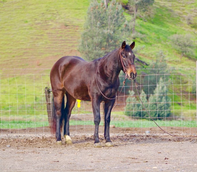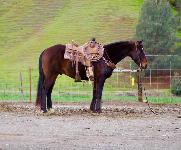"AVAILABLE ON ONLINE HORSE AUCTION AT www DOT PlatinumEquineAuction DOT com BIDDING OPEN NOW thru SUNDAY | MARCH 8TH! *Final price will be determined on auction site* CONSIGNOR CONTACT INFO: Longhorn Ranch 831-537-1915 LOCATION: Paicines, CA Lucky 8-Year-Old Bay Gelding • 14.3 Hands Lucky is a classy, well-made bay gelding with a kind eye, a willing attitude, and the type of versatility that makes him an incredibly enjoyable horse to own. Standing 14.3 hands and 8 years old, he offers that ideal combination of handiness, athletic ability, and substance — a size that fits just about anyone while still feeling capable and balanced. Lucky has a solid, correct foundation that allows him to transition smoothly into a variety of programs. He has been started on the lead steer and shows natural cow sense, quick feet, and an honest interest in cattle. He stays engaged in his work, reads situations well, and carries himself with a steady, willing mindset that makes every ride productive and enjoyable. Lucky is not quite finished in any one discipline, and that is truly one of his greatest strengths. Rather than being limited to a single job, he has the ability, training, and attitude to confidently step into a variety of different roles. Whether your goals include roping, sorting, ranch work, trail riding, or simply having a handy, athletic partner, Lucky offers the flexibility to go in the direction that best suits his next rider. In the arena, Lucky is soft, smooth, and correct. He travels willingly through all his gaits with easy, uncomplicated transitions. He moves nicely off your leg, stays balanced, and maintains a relaxed, cooperative feel. He’s the kind of horse that rides honest — no tension, no resistance, just a willing partner that stays tuned in and ready. His willingness is one of his most appealing qualities. Lucky approaches his work with a quiet, agreeable attitude and a genuine try. He accepts new tasks without fuss, handles correction without drama, and consistently gives his rider a confident, dependable feel. He is the type of gelding that makes you look forward to riding. Lucky has been exposed to obstacles including bridges, tires, and flags. He handles new challenges with curiosity and confidence rather than worry. Out on the trail, he is steady and sure-footed, navigating rocks, water, and trees with ease. He walks willingly into the water, stays relaxed in new environments, and remains respectful wherever he goes. Suitable for a variety of riders, Lucky is forgiving, willing, and kind-minded. He has the disposition to be enjoyed by someone wanting a fun, uncomplicated ride while still offering the athleticism and talent for a rider with specific goals. Beyond his rideability, Lucky is simply a pleasure to have around. He is easy to catch, easy to saddle, and easy to handle. He ties, hauls well, currently barefoot and handles time off without becoming fresh or unpredictable. He maintains the same steady, willing attitude that makes him such a reliable and enjoyable partner. Lucky represents a rare opportunity to own a well-started, talented gelding with the mind and ability to go in multiple directions. Horses like him offer both immediate enjoyment and exciting future possibilities. Located in Paicines, California Longhorn Ranch Dina 831-537-1915 Nationwide Shipping Available We are happy to assist in arranging safe, reliable transportation anywhere in the United States.