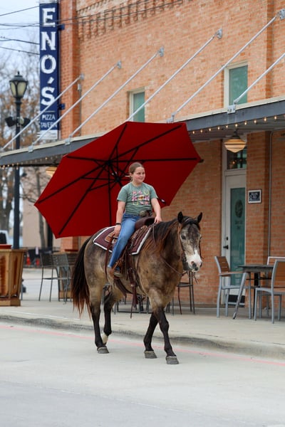 Disco, gelding quarter horse di 8 anni, altezza 14.3 hh, colore buckskin