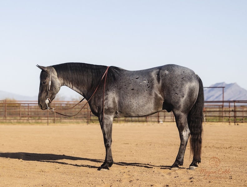 ⚜️𝓽𝓱𝓮 𝐆𝐎𝐋𝐃 𝓢𝓮𝓵𝓮𝓬𝓽⚜️ Happening now thru MONDAY | MARCH 23rd - Available EXCLUSIVELY on HorseBid's website! For more details and to register visit: www.Horsebid.com CONSIGNOR CONTACT: J arrow livestock 208-550-0992 LOCATION: Wickenburg, AZ BREED: AQHA REGISTERED: Yes REGISTERED NAME: Boons got the blues COLOR: Blue roan HEIGHT: 14.3 AGE: 8 GENDER: Gelding What an amazing blue roan gelding! He’s broke to death beautiful to look at and so much fun to ride. Skeeter is a trained reined cowhorse who was shown successfully he was also used on the ranch throughout his cowhorse training. Since he has spent time on the ranch and has continued his arena training. Skeeter is gentle and safe for the whole family our 12 year old has been heeling steers on him this winter and he’s super easy to operate. He will really watch a cow and would also be a big time sorting horse. This gelding is so versatile, if you can do it horseback skeeter can help you get it done. Easy going down the trails he’s not spooky or watchy at all. He will cross water and anything you point him towards. He’s also traffic safe and has been to town to see the sights. We’ve heeled and breakawayed a bunch of cattle on him and he’s really took to it good. He would be a jam up high school rodeo horse, you could show him in the cowhorse breakaway and heel on him. He’s one of those really good geldings that are super hard to find and impossible to replace. Skeeter is 100% sound with no vices please call us to learn more about him or to come give him a try.