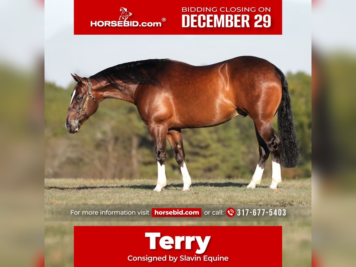 ⚜️ 𝓗𝓮𝓻𝓲𝓽𝓪𝓰𝓮 𝐖𝐢𝐧𝐭𝐞𝐫 𝓒𝓵𝓪𝓼𝓼𝓲𝓬⚜️ Happening now thru MONDAY | DECEMBER 29th - Available EXCLUSIVELY on HorseBid's website! For more details and to register visit: www.Horsebid.com CONSIGNOR CONTACT: Slavin Equine 317-677-5403 LOCATION: Whitesboro, TX BREED: Quarter Horse REGISTERED: Yes REGISTERED NAME: GT Oh COLOR: Bay HEIGHT: 15 AGE: 7 GENDER: Gelding If you’re searching for a gelding that can quietly pack a beginner down the trail one day and confidently step into the performance arena the next, meet Terry! A gorgeous 15-hand, 7-year-old bay gelding with a heart as big as his stop, Terry has been with one owner his entire life, giving him a solid foundation built on consistency, trust, and care. He’s exceptionally personable, greeting you at the gate with ears forward and soft eyes—always willing, curious, and full of character. Terry is a trained reining horse that has been hauled and shown. He has competed at some local ranch riding shows and placed first. He has been around cattle and rode miles outside. Whatever you set your mind to he has had the miles and training to be right there with you! Terry goes exactly at the pace you ask. He naturally slows down for a little kid or total beginner without hesitation, yet he is equally happy to step up when asked. His jog, lope, and long trot are smooth, balanced, and comfortable, making every ride a joy. He has a huge, confident stop, clean, easy turnarounds, and effortless lead departures. Whether it’s a simple ride around the ranch or a trail ride across varied terrain, Terry remains steady, responsive, and confident every step of the way. He’s been around cattle and navigates new situations or arenas with ease. On the ground, Terry is just as easygoing. Polite, kind, and fun to be around, he has a personality that keeps you smiling—expressive, affectionate, and always eager for scratches or treats. He’s a gentleman in the stall, excellent in cross-ties, loads and hauls without issue, and a solid citizen in new places. His ears-forward, kind nature makes him approachable and comforting for riders of all ages and experience levels. Terry is sound, well-built, and just all around dependable. He’s a horse you can ride every day—or give a week or two off and jump back on, confident that he’ll be exactly the same. With smooth, balanced gaits, a willing attitude, and a big personality, Terry is versatile, consistent, and ready to become your next lifelong partner. Pedigree-wise, Terry is sired by Gunners Tinseltown, an earner of $307,000 and a Million Dollar Sire. His dam, Mob Gal, is a granddaughter of the legendary Smart Chic Olena, giving Terry both the talent and mind that riders look for. Terry comes with a current vet letter and clean X-rays on file. Located in Whitesboro, Texas, we welcome anyone to come meet and try Terry to see for themselves why we love him so much. If you’re looking for a horse with the heart, talent, and personality to be both a competitive partner and a family-friendly ride, don’t let this one pass you by. We can help arrange hauling and have shipped horses all over the United States and even internationally! Don’t hesitate to call us with any questions!