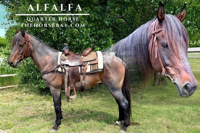 Meet Alfalfa – The Ultimate All-Around Quarter Horse Gelding Age: 6 years | Height: 15 hh | Breed: Quarter Horse Gelding If you’re looking for a well-rounded, reliable, and experienced gelding—Alfalfa checks all the boxes. At 6 years old and 15 hands tall, he’s the perfect size and age to step into any program confidently. Trail-Tested & Bombproof Alfalfa has been extensively trail-ridden and handles all kinds of environments with confidence. He’s been ridden along highways with semis and trailers flying by and through busy downtown areas at night with lights, music, and crowds—he stays calm, focused, and steady no matter what’s going on around him. Well-Mannered & Easy to Handle Alfalfa is just as solid on the ground as he is under saddle. He’s respectful, well-trained, and enjoys the job—whatever it is. • Loads, hauls, and travels well • Eats and drinks on the road • Quiet to tie, saddle, and bridle • Picks up all four feet easily • Stands for the farrier and vet • No buck, bite, rear, or kick ⸻ Ready for Anything With his solid foundation, real-world exposure, and level-headed demeanor, Alfalfa is ready to go in any direction—trail, ranch, or pleasure. He’s dependable, willing, and a true joy to ride and be around. Horses like Alfalfa are hard to find. Come meet him—you won’t be disappointed.