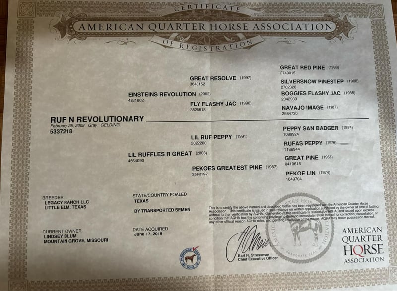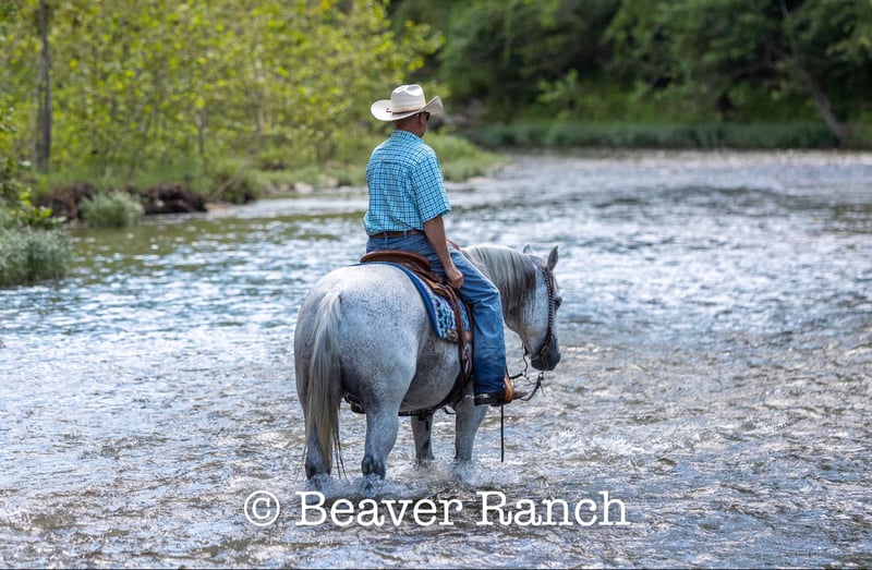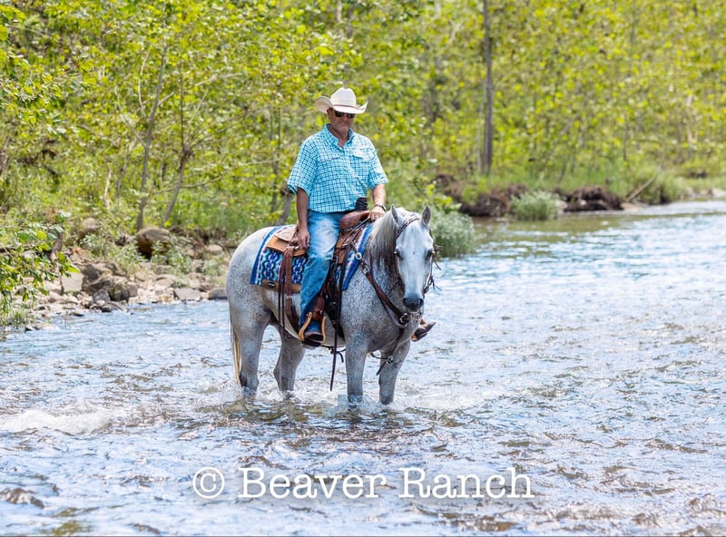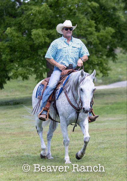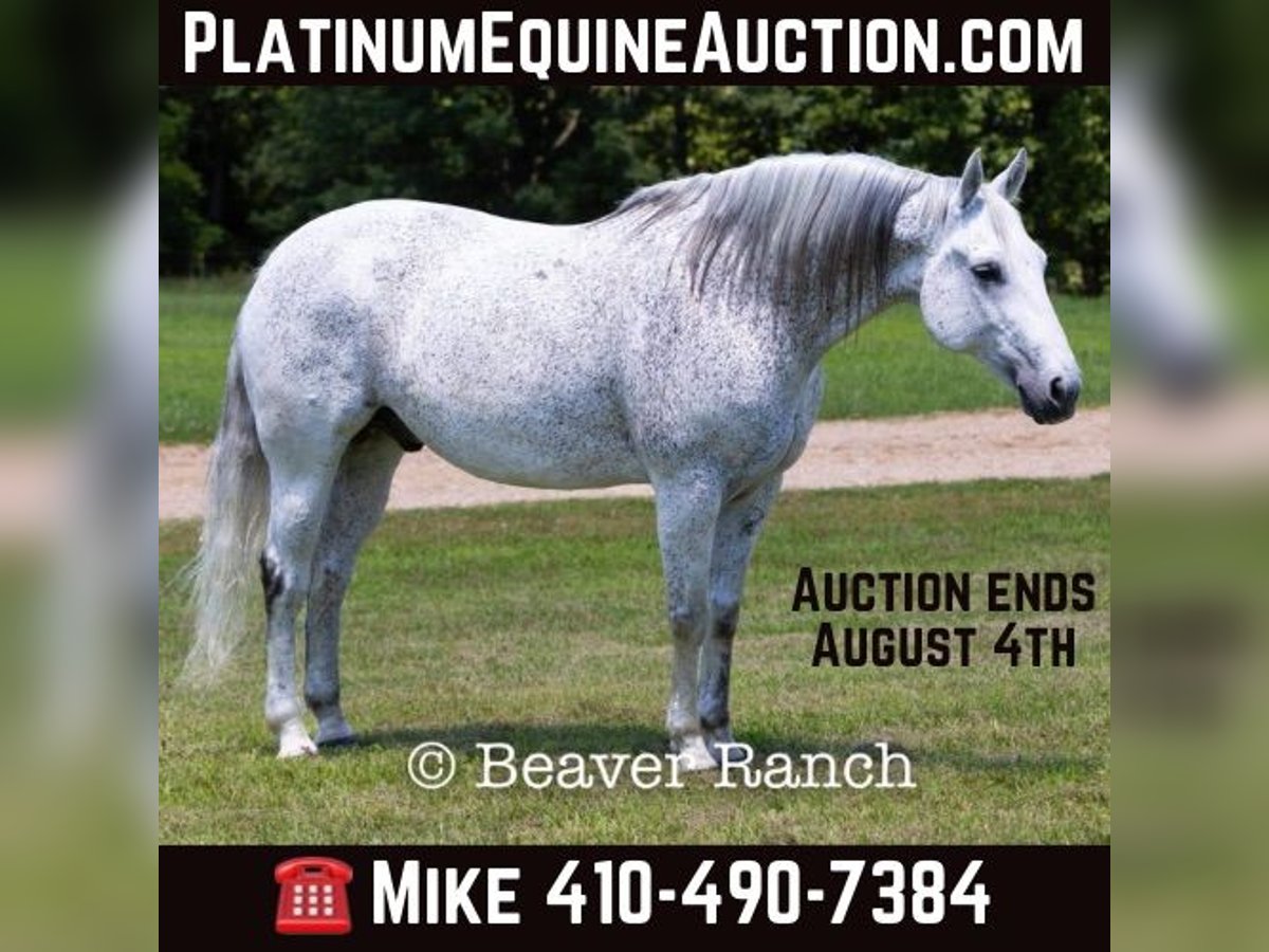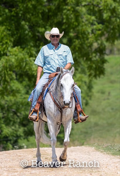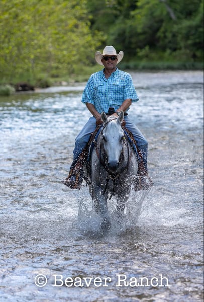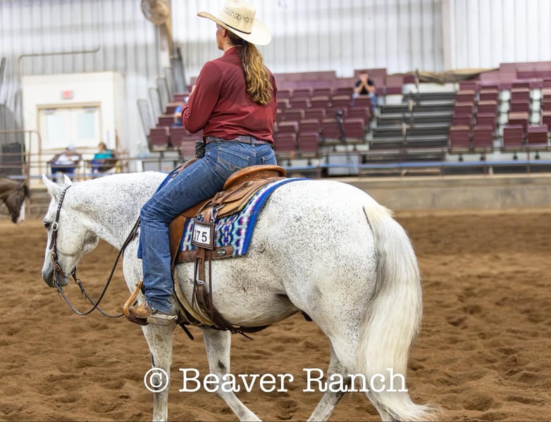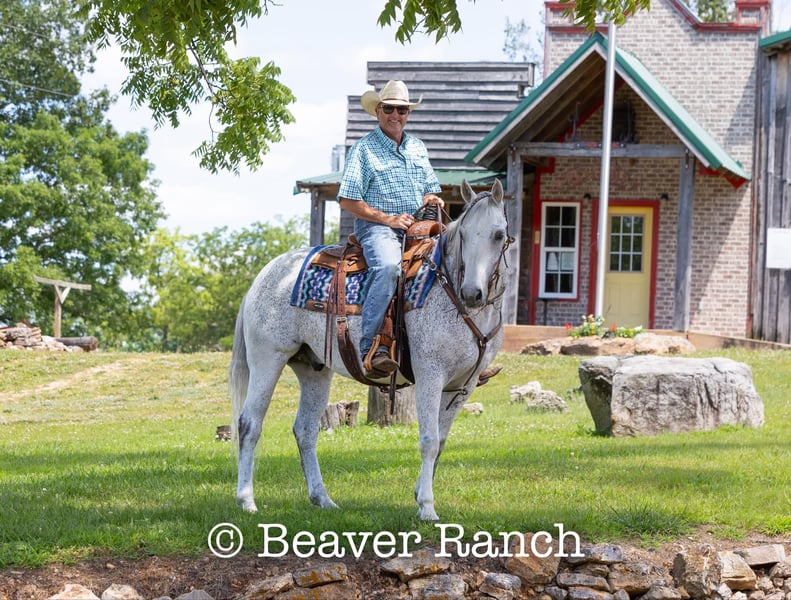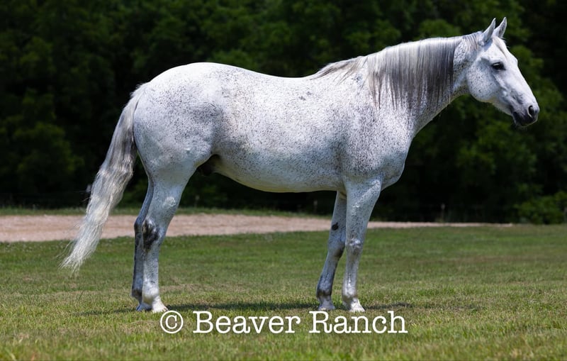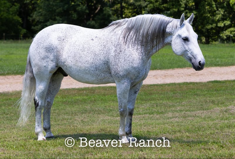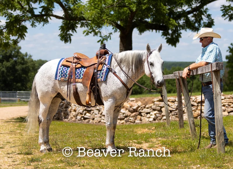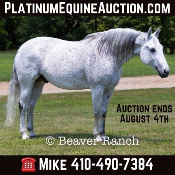 NLINE AUCTION Place your bids at www.PlatinumEquineAuction.com Starting Bid $3500 Auction ends August 4th, 2024 Need a new saddle? Check out White Rock Saddles on our website or Facebook! Ruf N Revolutionary…..Better Known as “Einstein “around the barn . He is a Registered AQHA grey gelding. Who is 15 hands tall and 16 years old. Don’t let his age fool you he feels and looks like a 6 yr old. This is one of them hard to find . Great bred and broke seasoned geldings . That will take you anywhere and do anything. He is sound with no maintenance. He is an own son of the great sire “Einsteins Revolution “. He has been shown In the reining and ranch versatility. Last month was the first time we showed him in two years . Where he finished second in a large group of 18 talented horses. In the reining class. The kids have started him over fences which he absolutely loves. Einstein went to his first hunter show last week where he win the flat class and the 2’6 over fences. This week he guided our weekly dude string of horses on trail rides . This guy will be there every morning to greet you at the gate . Ready to enjoy whatever days job you give him .He lives outside 24/7. Einstein is one of our top horses in the trail riding string of horses. Takes all obstacles out on the trail and is very easy to maneuver .He is extremely broke and goes through all obstacles with ease. Einstein has been a pony horse at the racetrack as well. This guy will meet you at the gate every morning with a ready to work attitude. Very easy to catch and get along with. He is totally up to date on vet/farrier /dental and has all necessary paperwork and vaccines all ready to go.Also comes with a clean vetting.. We can help with shipping anywhere from coast to coast. We strongly encourage customers to come out and try our horses . Einstein is located in Mt. Grove, MO. Call Beaver Ranch Mike 410-490-7384 for more info. ONLINE AUCTION Place your bids at www.PlatinumEquineAuction.com Starting Bid $3500 Auction ends August 4th, 2024 Need a new saddle? Check out White Rock Saddles on our website or Facebook!