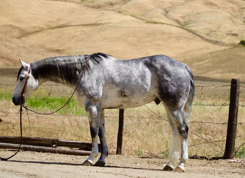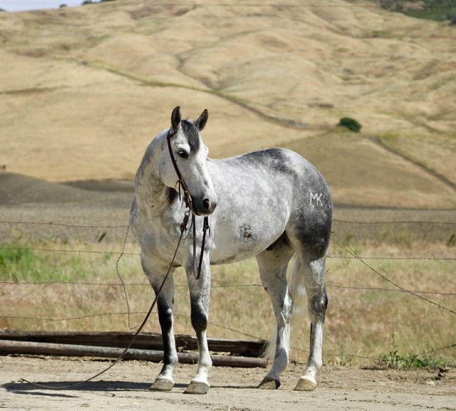 "AVAILABLE ON ONLINE HORSE AUCTION AT www DOT PlatinumEquineAuction DOT com BIDDING OPEN NOW thru SUNDAY | MAY 3RD! *Final price will be determined on auction site* CONSIGNOR CONTACT INFO: Longhorn Ranch 831-537-1915 LOCATION: Paicines, CA AQUA 8-Year-Old Dapple Grey Gelding • 15 Hands Aqua is the kind of gelding that’s been ridden with a purpose. Standing a solid 15 hands, this dapple grey is put together right with bone and shape, with a look that holds up anywhere—but it’s not just appearance. He’s a horse that’s been used, seasoned, and understands his job. He rides the way a good one should. Soft in the bridle, smooth through his transitions, and naturally balanced. He picks up both leads without effort, stays quiet in your hands, and carries himself with a steady, consistent feel. His stop is correct, his turnaround is clean, and he backs without resistance. Nothing overdone—just honest every time you ride him. Where Aqua really stands out is outside. He’s a true go-anywhere gelding. Hills, rocks, brush, and water crossings are all part of his routine. He travels carefully and stays sure-footed, and keeps his rider in a good position from start to finish. He’s been through obstacles and meets them the same way every time—quiet, willing, and confident Bridges, tarps, flags, logs—he doesn’t overthink it or make it a big deal. He walks up, handles it, and goes on. He’s been hauled and ridden in different places and stays consistent. No change in demeanor, no adjustment needed—he goes to work wherever you take him. He’s been used on the ranch and is good around cattle, and really stands out for how steady and dependable he is outside the arena. On the ground, Aqua is easy to have around. He’s good to catch, stands tied, saddles up without issue, and is well-mannered for the farrier and vet. He hauls quietly and settles in without fuss. This is a gelding for someone who values one that’s been seasoned, stays consistent, and handles whatever you ask of him without making it complicated. Aqua is one you can count on. Longhorn Ranch Dina • 831-537-1915 Paicines ca Shipping available nationwide with reputable haulers. We welcome in-person visits or video calls to go over him in detail.