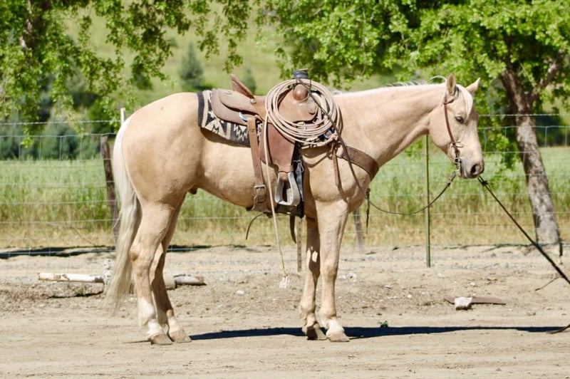"AVAILABLE ON ONLINE HORSE AUCTION AT www DOT PlatinumEquineAuction DOT com BIDDING OPEN NOW thru SUNDAY | APRIL 26TH! *Final price will be determined on auction site* CONSIGNOR CONTACT INFO: Longhorn Ranch 831-537-1915 LOCATION: Paicines, CA Agent “Golden Outside, Solid All the Way Through.” 8-Year-Old Palomino Gelding • 15 Hands If good horses were easy to find, everyone would have one like Agent… but they’re not—and that’s exactly why he stands out. Agent is a sharp, golden palomino gelding with a kind eye and a willing nature that makes him easy to get along with. He’s the kind that shows up to work with a good attitude. He’s been used to gather cattle and has had some roping in the pasture and lead steer, giving him a practical foundation without being overdone. He’s honest about his job, doesn’t try to outthink you, and seems perfectly content being the one that makes you look good. In the arena, Agent keeps things simple—in a good way. He picks up both leads, has a nice stop, a clean neck rein, and moves through his transitions smooth and correct. No drama, no extra buttons you didn’t ask for… just a horse that does his job and does it right. Outside is where he really proves his worth. Creeks, trees, wildlife, bridges—he handles it all like he’s got better things to worry about. Ride him down the road, haul him to town, take him to the trail course—flags, tarps, balls—he’s seen it and decided none of it is worth getting worked up over. (Unlike some who still flinch at plastic bags.) He’ll stand tied like he’s got nowhere else to be, settles in wherever you put him, and handles new places without making it a production. The kind you can count on to act the same whether he’s at home or somewhere new. Around the barn, he’s easy—catch him, tack him, clip him, bathe him… he’s agreeable about all of it. No negotiations required. Agent is a good-minded, broke gelding with a solid foundation and a disposition that’s hard to beat. The kind that quietly earns his keep and makes every ride a good one. He is safe for all levels of riders. Longhorn Ranch • Paicines, CA Dina • 831:537:1915 Shipping anywhere with a reputable hauler — call to find out more about this fantastic boy. We can video chat or you’re welcome to come meet him in person.