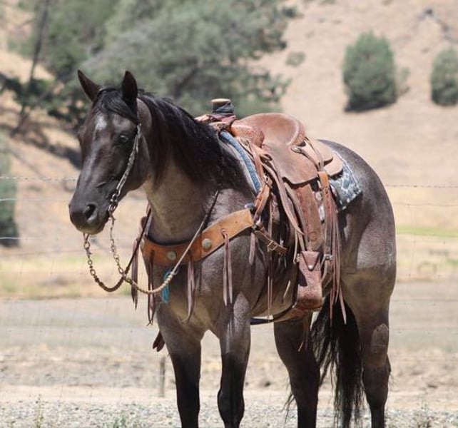 ONLINE AUCTION Place your bids at www.PlatinumEquineAuction.com Starting Bid $3500 Auction ends July 6 2025 Need a new saddle? Check out White Rock Saddles on our website or Facebook! Attention all equine enthusiasts! Allow me to introduce Aqua Man, the magnificent 7-year-old blue roan gelding who will capture your heart with just one ride. Standing proud at a height of 15 hands, this experienced gentleman has mastered countless tasks. Whether it’s branding calves or rounding up livestock, sorting, or any other ranch task, Aqua Man has proven himself to be a faithful ranch hand. On top of that, he boasts exceptional training, with a smooth and elegant collected lope, a seamless sliding stop, and a turn that will surely put a smile on your face. His circles are precise and accurate, and his movements are fluid and effortless. To top it all off, he is a gentle and trusty mount, suitable for riders of any skill level. When out on the trail, he fearlessly tackles any terrain, whether it’s narrow paths, deep waters, or logs to climb over. He navigates with grace and confidence, making him an ideal companion for outdoor adventures. He has happily participated in group treks and has no problem riding solo. He is also acclimated to various obstacles, calmly crossing bridges, cowboy curtains, and tires with ease. Aqua Man is a horse that the entire family can adore, excelling in any discipline. We have taken him down bustling streets, and he has been an absolute champ, willing to do whatever is asked of him. He is also a breeze to handle, catch, clip, and bathe, and he stands patiently for the farrier. He is an absolute delight to be around, and he will undoubtedly be the lifelong partner you have been searching for. If you are interested in meeting this incredible horse, please contact Dina at Longhorn Ranch 831-537-1915, located in Paicines, California. Don’t miss out on your dream horse! ONLINE AUCTION Place your bids at www.PlatinumEquineAuction.com Starting Bid $3500 Auction ends July 6 2025 Need a new saddle? Check out White Rock Saddles on our website or Facebook!