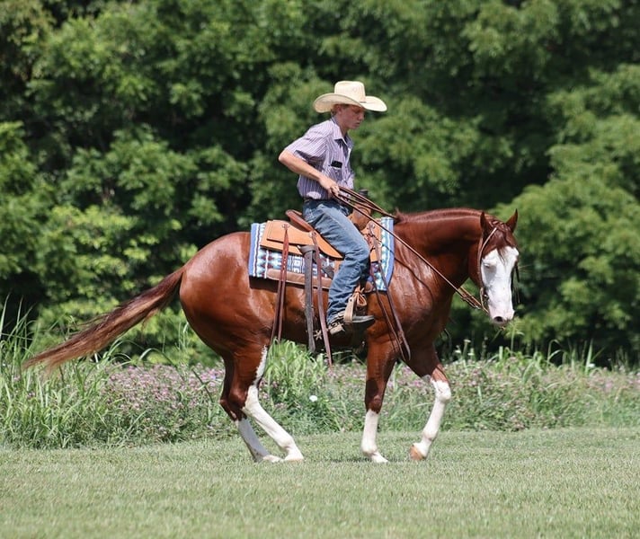 ONLINE AUCTION Place your bids at www.PlatinumEquineAuction.com Starting Bid $3500 Auction ends August 18th, 2024 Need a new saddle? Check out White Rock Saddles on our website or Facebook! All’s Lip Smacking Good aka Smack is a stout built Chestnut Overo horse standing around 15.1hh and he is a 2018 Model Registered APHA Gelding. He has an excellent pedigree going back to the famous Topsail Whiz who is an AQHA Hall Of Famer who has sired over $12 Million Dollars in offspring. The Topsail Whiz bloodline is well known throughout the reining world and also in the cowhorse world. Since owning Smack he has been used at the stockyards to pen cattle, we’ve had him out in the pasture gathering cattle and he has roped a couple as well. He has been started on the roping dummy and is doing a good job tracking it. He knows his way around the ranch and has plenty of cow sense. Smack is an excellent horse to take for a relaxing trail ride as he is great on trails and he will cross creeks, ditches, logs and navigate rough rocky areas. He has a smooth jog, a VERY VERY nice easy to set lope, a good stop, turns a circle both ways and backs with ease! Smack has had some reining training and would be an excellent horse to enter the show pen in the ranch horse classes. He rides with his head low and will keep a loose/draped rein. He has been exposed to all kinds of wildlife. He will go up or down steep slopes, across deep creeks, over downed trees, and over all types of rough terrain while still being sure footed. He has been ridden through town and is safe in traffic is not spooky. Smack is an excellent horse for any job around the ranch or trails! He is located in Level Green, KY. Feel free to call Moore Trained Horses Logan 765-265-0033 with any questions. ONLINE AUCTION Place your bids at www.PlatinumEquineAuction.com Starting Bid $3500 Auction ends August 18th, 2024 Need a new saddle? Check out White Rock Saddles on our website or Facebook!