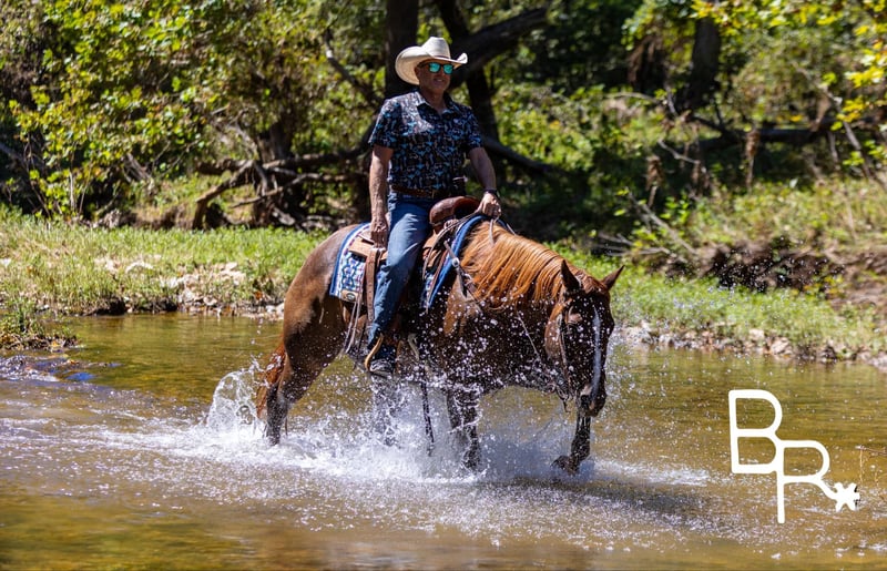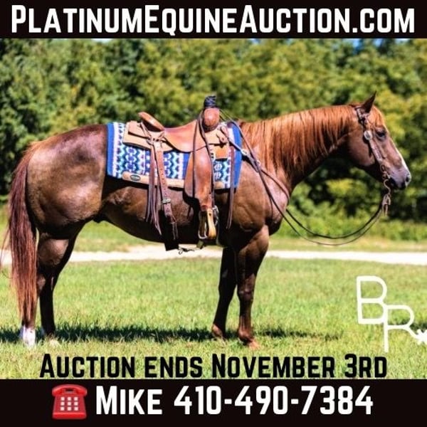 ONLINE AUCTION Place your bids at www.PlatinumEquineAuction.com Starting Bid $3500 Auction ends November 3rd, 2024 Need a new saddle? Check out White Rock Saddles on our website or Facebook! Smitty is a beautiful, stout built, 15.1H, 6 year old, grade Quarter Horse gelding. He has been in our trail riding string of horses all summer long. He is super safe, gentle and friendly. There is not an obstacle that he will not cross. Easy to ride with a calm disposition. Gets along well with other horses in the pasture and on the trail. Easy to catch and will come running to the gate to greet you. Rides out alone with other horses and can ride at the front or back of the ride without fuss. Rides just as nicely bareback with a halter and lead rope as he does with a saddle and bridle. Family type horses. Ultimate trail riding gelding. Limited riding in an arena but will lope circles in the arena. Trail riding is his specialty and he has been rode many miles. If you’re looking for something to saddle up on the weekends, relax, and enjoy your trail ride with friends and family this is your guy! We highly encourage customers to come try horses in person before bidding! Located in Mountain Grove, MO Shipping available all across the country All horses are sold UTD on coggins, shots, vetting, farrier and dental. For more information on Smitty or to schedule a visit to come meet Smitty please call/text Beaver Ranch Mike 410-490-7384. ONLINE AUCTION Place your bids at www.PlatinumEquineAuction.com Starting Bid $3500 Auction ends November 3rd, 2024 Need a new saddle? Check out White Rock Saddles on our website or Facebook!
