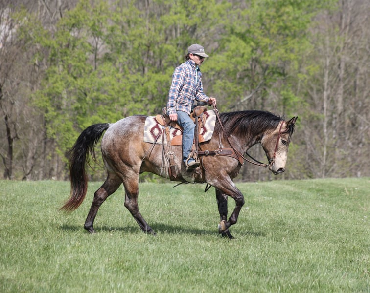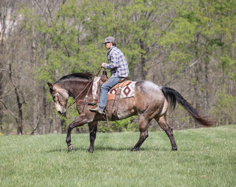Shady, gelding di 8 anni, altezza 15,2 hh, colore buckskin roan, proveniente da AQHA