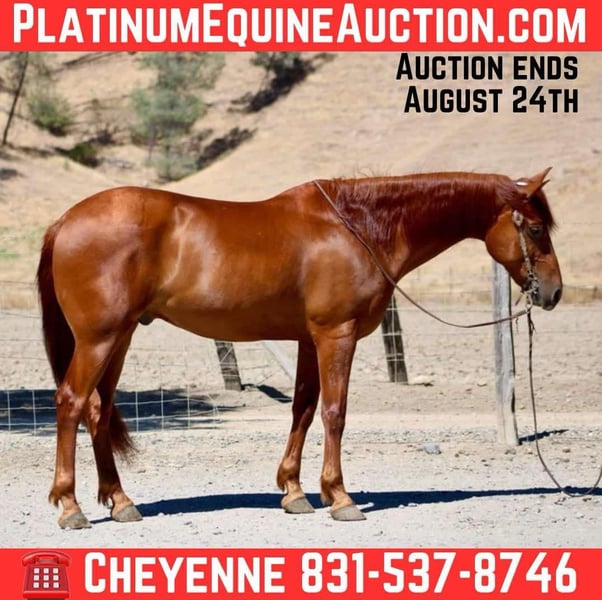 ONLINE AUCTION Place your bids at www.PlatinumEquineAuction.com Starting Bid $3500 Auction ends August 24th, 2025 Need a new saddle? Check out White Rock Saddles on our website or Facebook Meet Arnie, a handsome 7-year-old 16hh Quarter Horse cross gelding who checks all the boxes! Arnie is the kind of horse that’s hard to find. He is safe for anyone, gentle, and well-broke with real-world ranch experience. This sweet boy has been used for ranch work, including roping cattle both in and out of the arena, and has miles of trail riding under his belt. Anything ranch related you can do on his back. He is HANDY to have around. Open and close gates, sort cattle, brand etc. he will be your new best friend. He’s very fancy broke with a reining type of foundation. He has a solid handle, soft in the face, responsive to leg, and smooth in all gaits. He has a great turn around, a low head set in all gaits and is so smooth you’ll feel like you’re riding a rocking chair. He’s absolutely bombproof — no spook, no buck, no bite. He’s great on the obstacle horses, outside with bridges, creeks and anything that would be outside on the trail. He has carried flags, tarps, and nothing phases him. Arnie is as friendly as they come and meets you at the gate every time. His calm, kind nature makes him a great fit for riders of all levels, including beginners. Whether you’re looking for a trustworthy trail companion, a dependable ranch hand, or a safe mount for the whole family, Arnie delivers. He is great with other horses, loads and hauls perfectly and stands at the cross ties for any reason. He truly is a gem. Arnie is located in Bitterwater, CA. For more information contact Cheyenne Rey at 831-537-8746. ONLINE AUCTION Place your bids at www.PlatinumEquineAuction.com Starting Bid $3500 Auction ends August 24th, 2025 Need a new saddle? Check out White Rock Saddles on our website or Facebook
