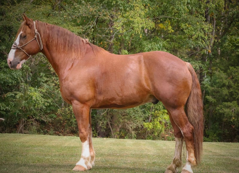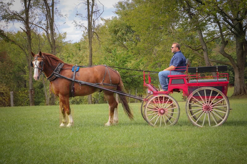 ONLINE AUCTION Place your bids at www.PlatinumEquineAuction.com Starting Bid $3500 Auction ends October 13th, 2024 Need a new saddle? Check out White Rock Saddles on our website or Facebook! This is “ARNOLD”, a big stout muscular BELGIAN QUARTER CROSSBRED that is family friendly, super gentle, and very easy to ride or drive. He is 6 years old and stands 17 hands tall. He is well broke to ride and to work double or single. He has been used to pull carriages and give wagon rides at the pumpkin festivals and Christmas tree farms. He has been ridden by youth riders and will trail ride quietly for beginners. He has also been used for ranch work and is handy when you ask him to be. He will sit down and turnaround nicely and he has a big stop. He moves off of leg cues, sidepasses, and you can open and close gates off of his back. He catches his leads, jogs and lopes nice circles, and will one step lope. He has no hump and no buck. He will cross any depth of water and he is not spooky. He is traffic safe on the roads and unphased by large crowds and noisy surroundings. He unloads in new places quietly and rides off collected and calm. Beginner teamsters can drive him without any problem. He stands to harness and hitch. He loves to work and truly has a pleasant agreeable personality that makes him everyone’s barn favorite. He is super versatile. You can rope off of him, work cattle, trail ride, shown him at the hitch classes, take him on a wagon train, or skid some logs out of the woods. He is a great horse with lots of training, sense, ability, and a ton of heart. Call HH Horses Erin 304-238-4155 Located in Flemingsburg, KY. ONLINE AUCTION Place your bids at www.PlatinumEquineAuction.com Starting Bid $3500 Auction ends October 13th, 2024 Need a new saddle? Check out White Rock Saddles on our website or Facebook!
