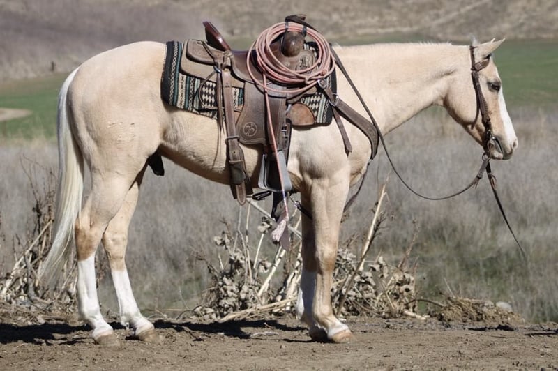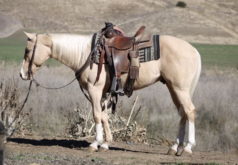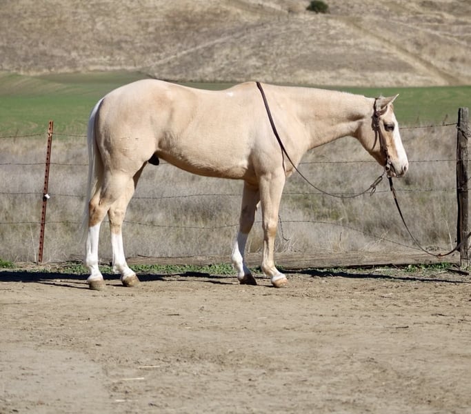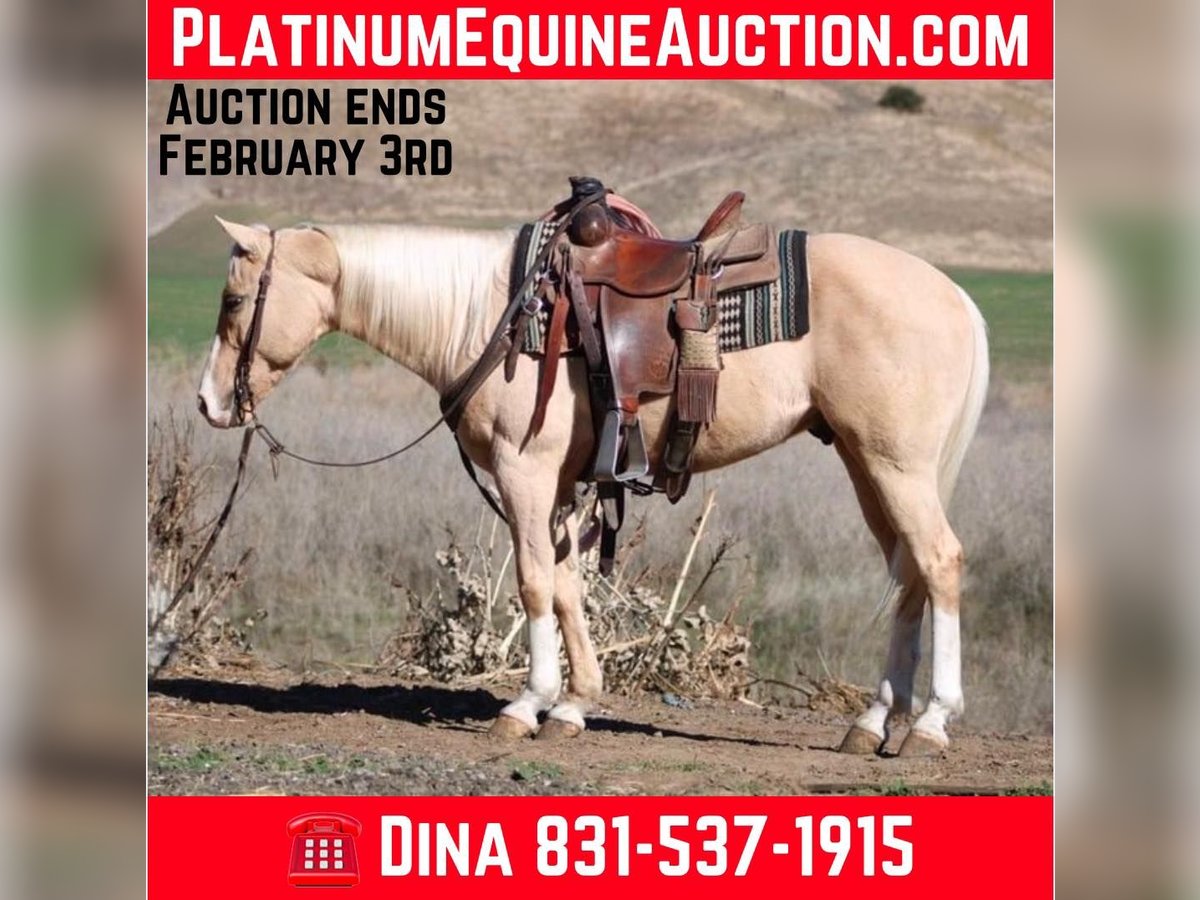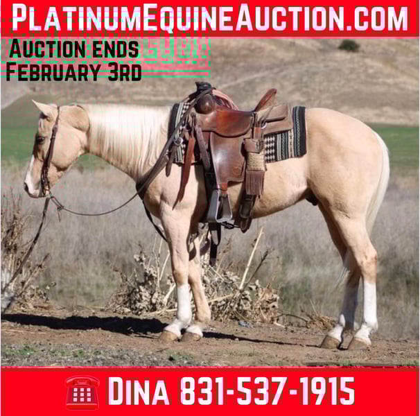 ONLINE AUCTION Place your bids at www.PlatinumEquineAuction.com Starting Bid $3500 Auction ends February 3rd, 2025 Need a new saddle? Check out White Rock Saddles on our website or Facebook! Bruno is the palomino gelding who’s everything you’ve ever dreamed of in a horse! At 14.3 hands and just 7 years old, this charming boy is perfect for families and adventurers alike. With his “born broke” attitude, he’s not just a safe ride; he’s your ultimate companion for everything from family outings to rodeo events to tranquil trail riding. This horse is safe trustworthy and easy to handle in any situations. He truly is a confidence builder for any level rider. Bruno will take you through trails and forests while he effortlessly navigates rocks, logs, and rivers like a true backcountry guide. In the arena, his calm demeanor shines as he picks up leads with ease and turns on a dime. You can. Ride him bridle less, bareback or just in halter makes no difference to him. Plus, he’s tackled trail courses that would make any horse owner proud. He has navigated tires, bridges, flags, bouncy balls all with his I can attitude. Busy streets are no challenge car horns and passing trucks are just another day for this seasoned champ. And if ranch work is on your agenda, Bruno is roping the sled and slow cattle and making a sweet heel horse. He is happy to gather with the best of them! He also branded cattle and is super fun. He’s easy to catch, shoe, and bathe, and he absolutely loves his grooming sessions. He stands tied tacks up easy and is great for the farrier and vet appointments. He pastures or stalls well. He loads well hauls calmly and takes in new places with poise and confidence you can go out solo or with a group makes no difference to him. This special boy is ready to join your family! Contact Longhorn Ranch Dina 831-537-1915 Located in Paicines, CA, to learn more about Bruno Can’t wait to speak with you about this golden boy! ONLINE AUCTION Place your bids at www.PlatinumEquineAuction.com Starting Bid $3500 Auction ends February 3rd, 2025 Need a new saddle? Check out White Rock Saddles on our website or Facebook!